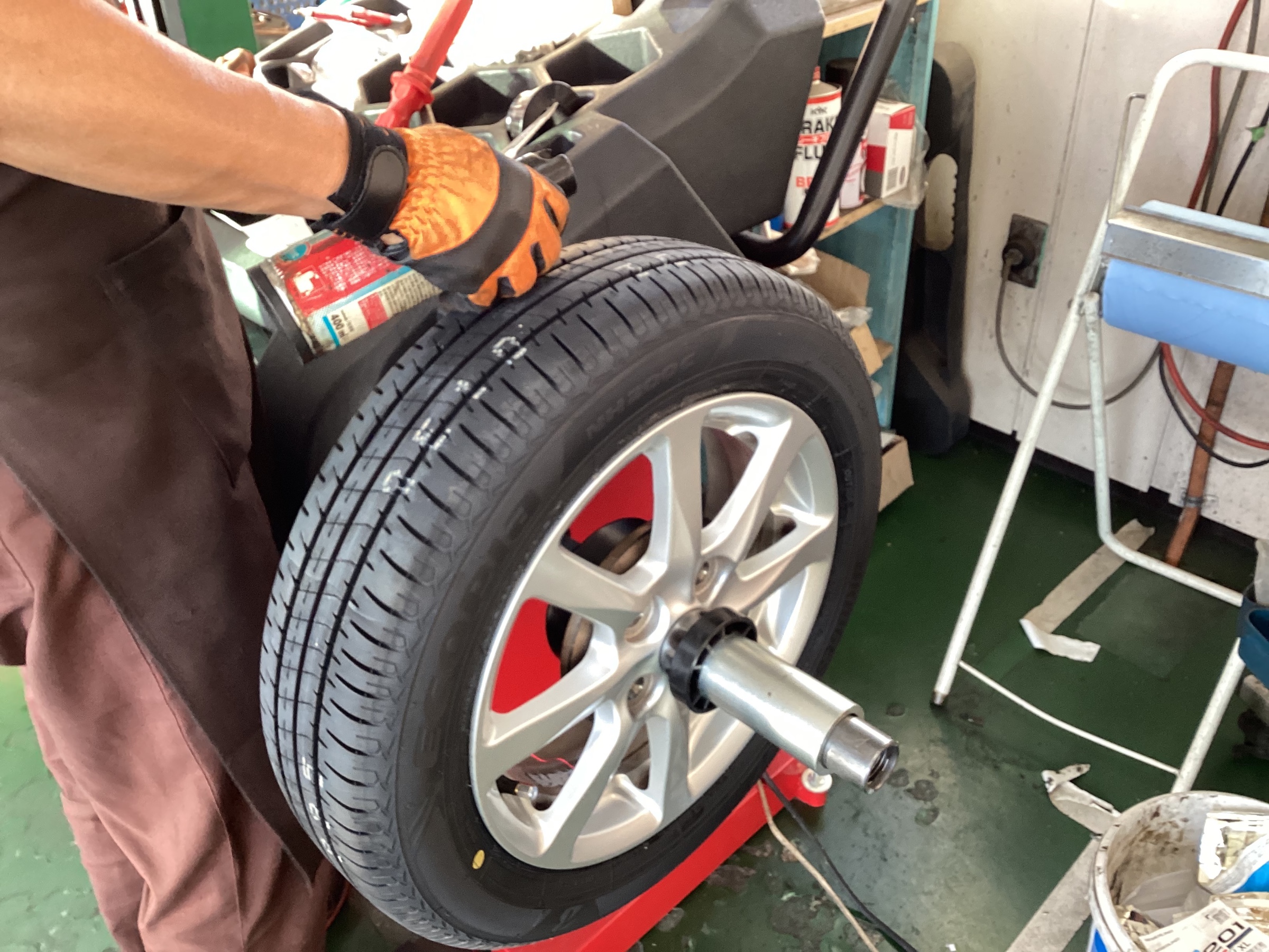 まずは新品タイヤを組み、そのあとバランス調整を行います!