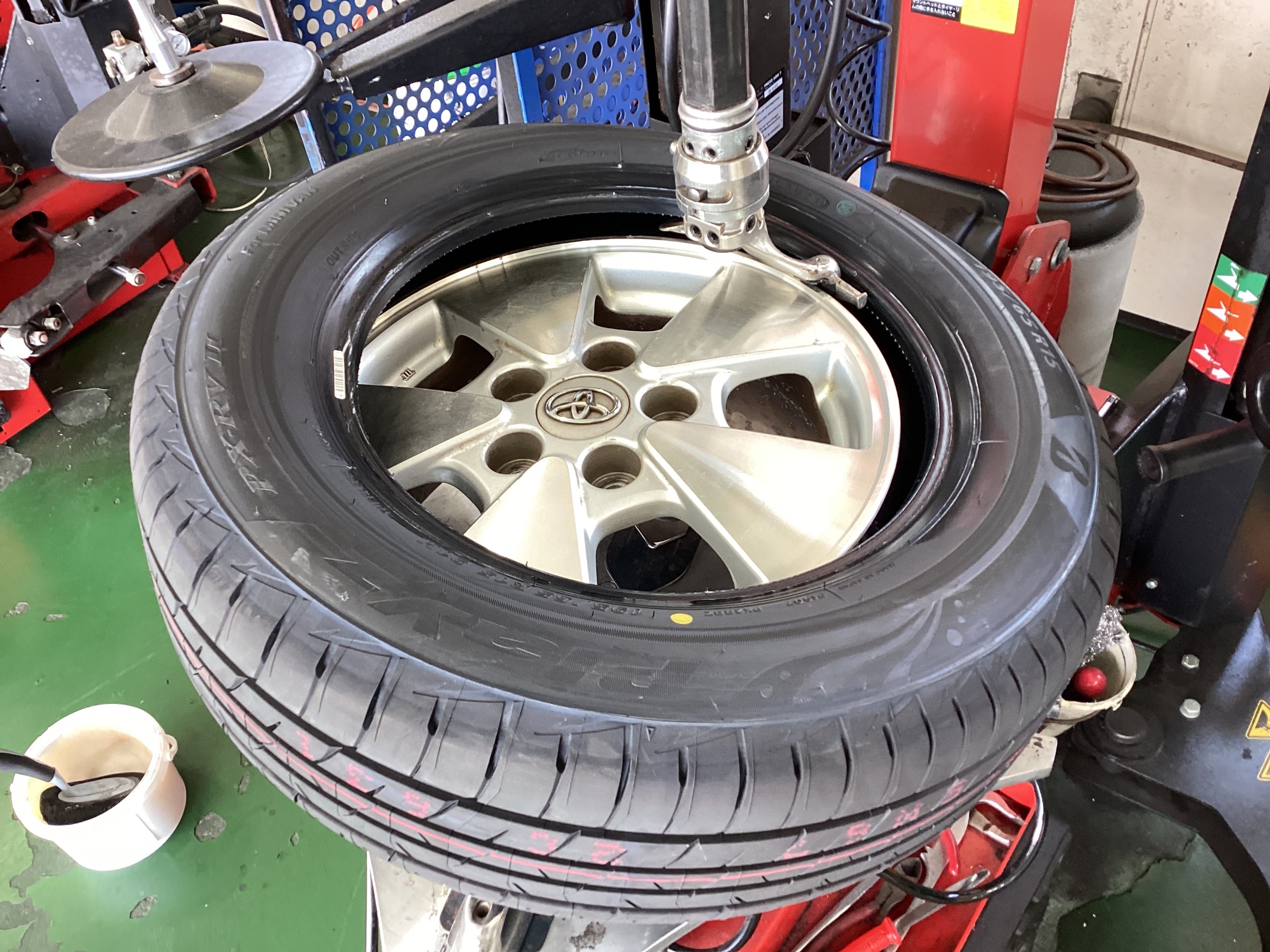 まずは新品タイヤを組み、そのあとバランス調整を行います!