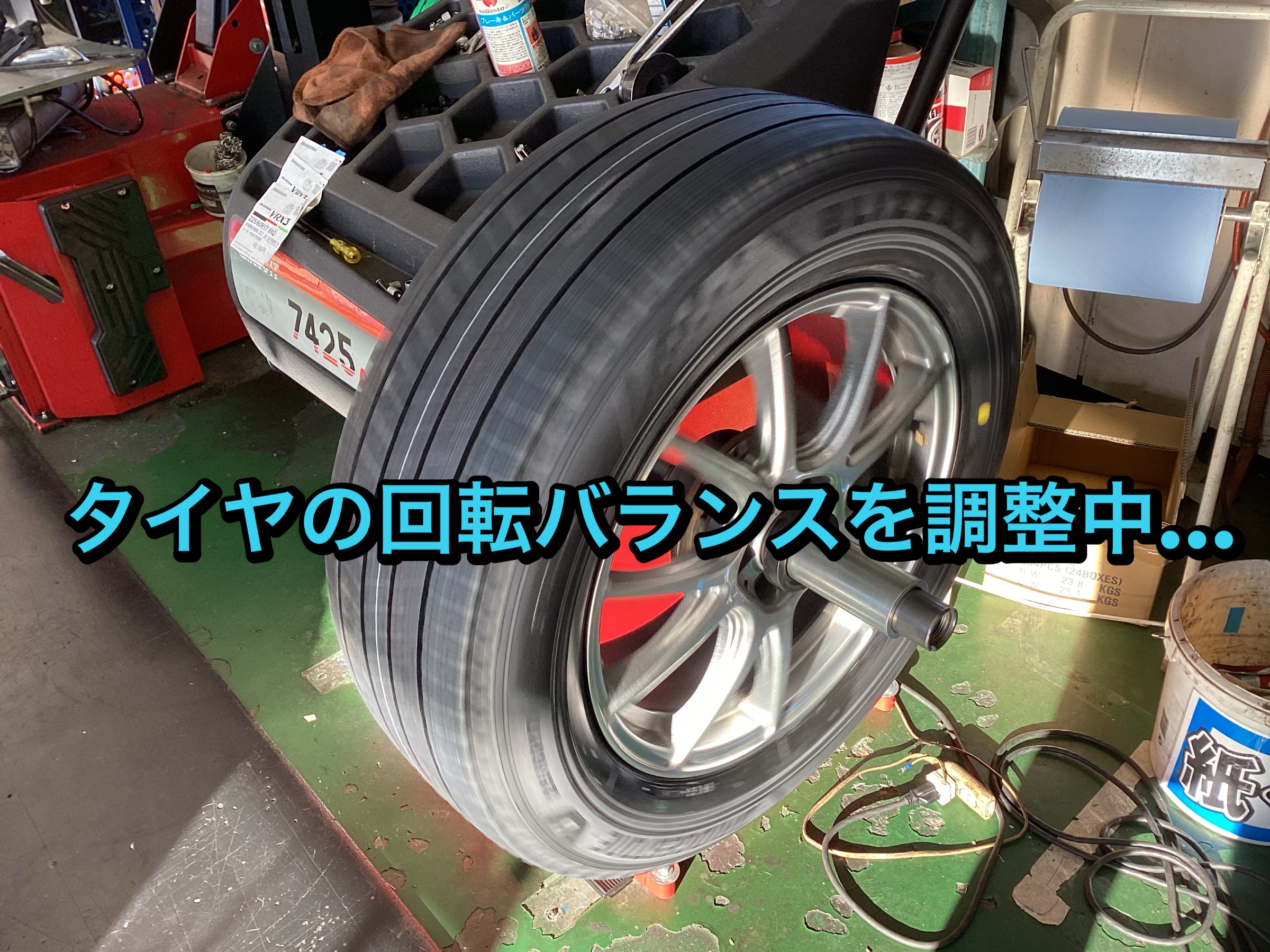 バランス調整とは、空気を充填したタイヤ・ホイールを専用の機械に取り付けて回転させ計測し、