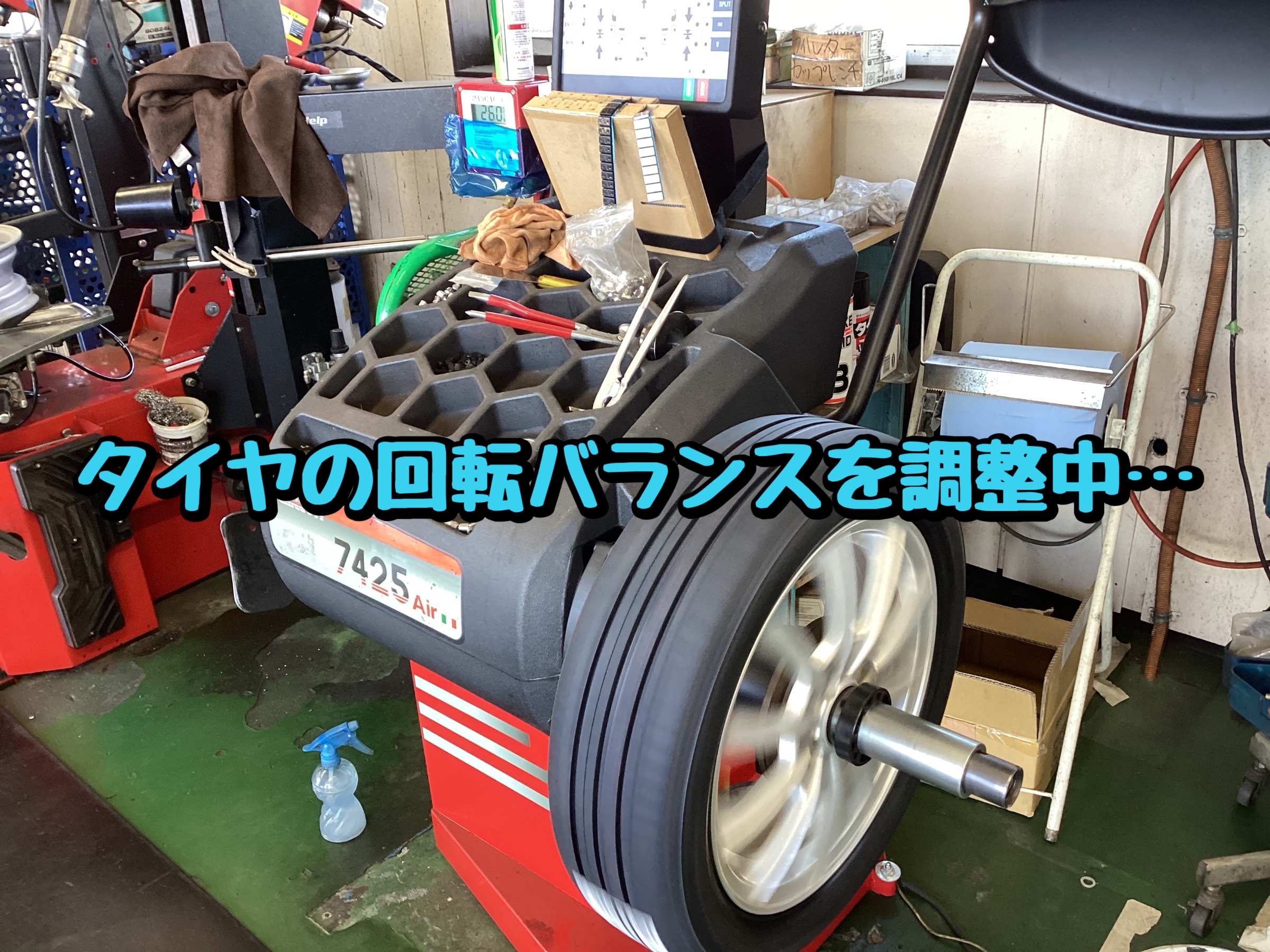 バランス調整とは、空気を充填したタイヤ・ホイールを専用の機械に取り付けて回転させ計測し、