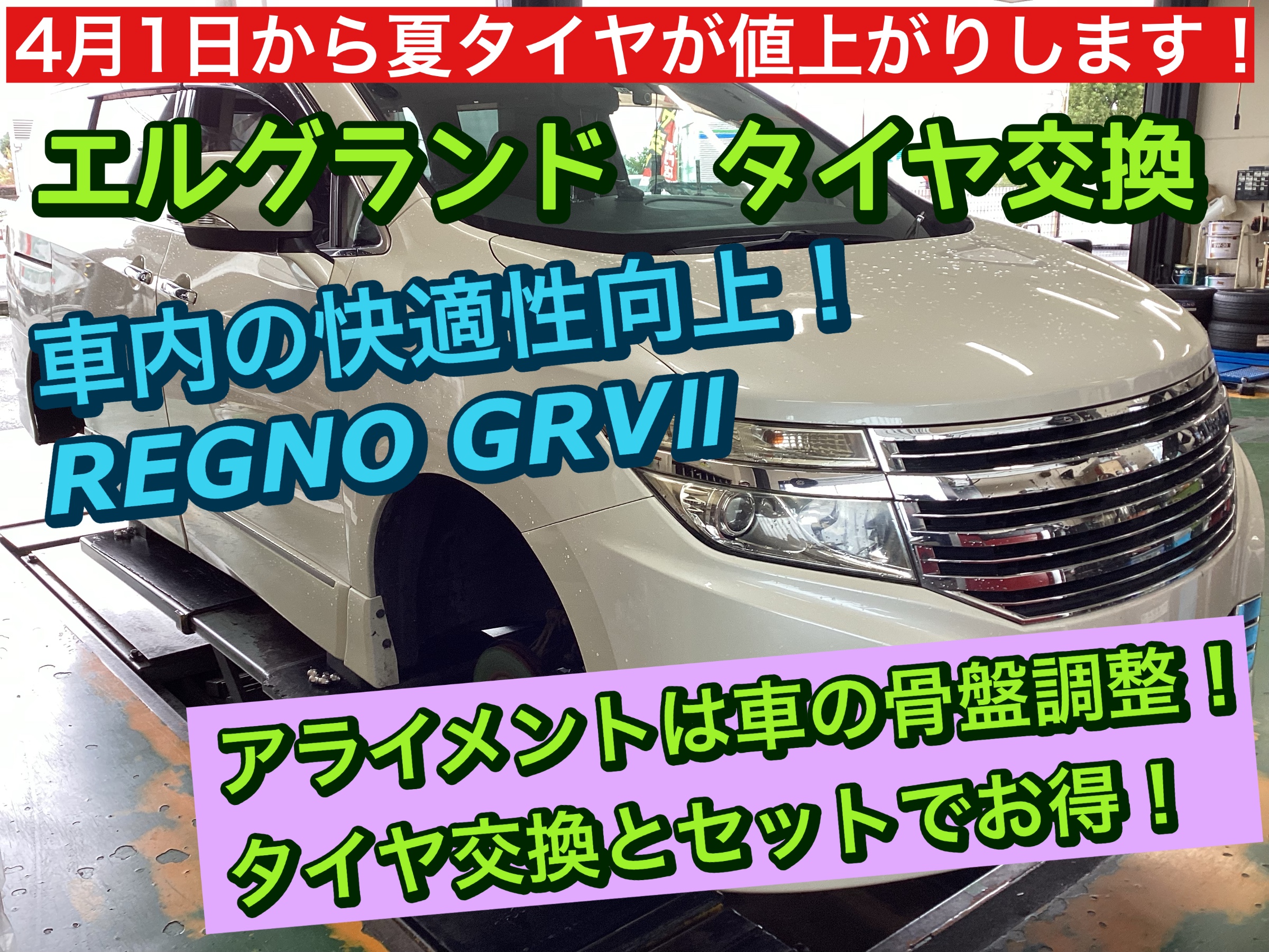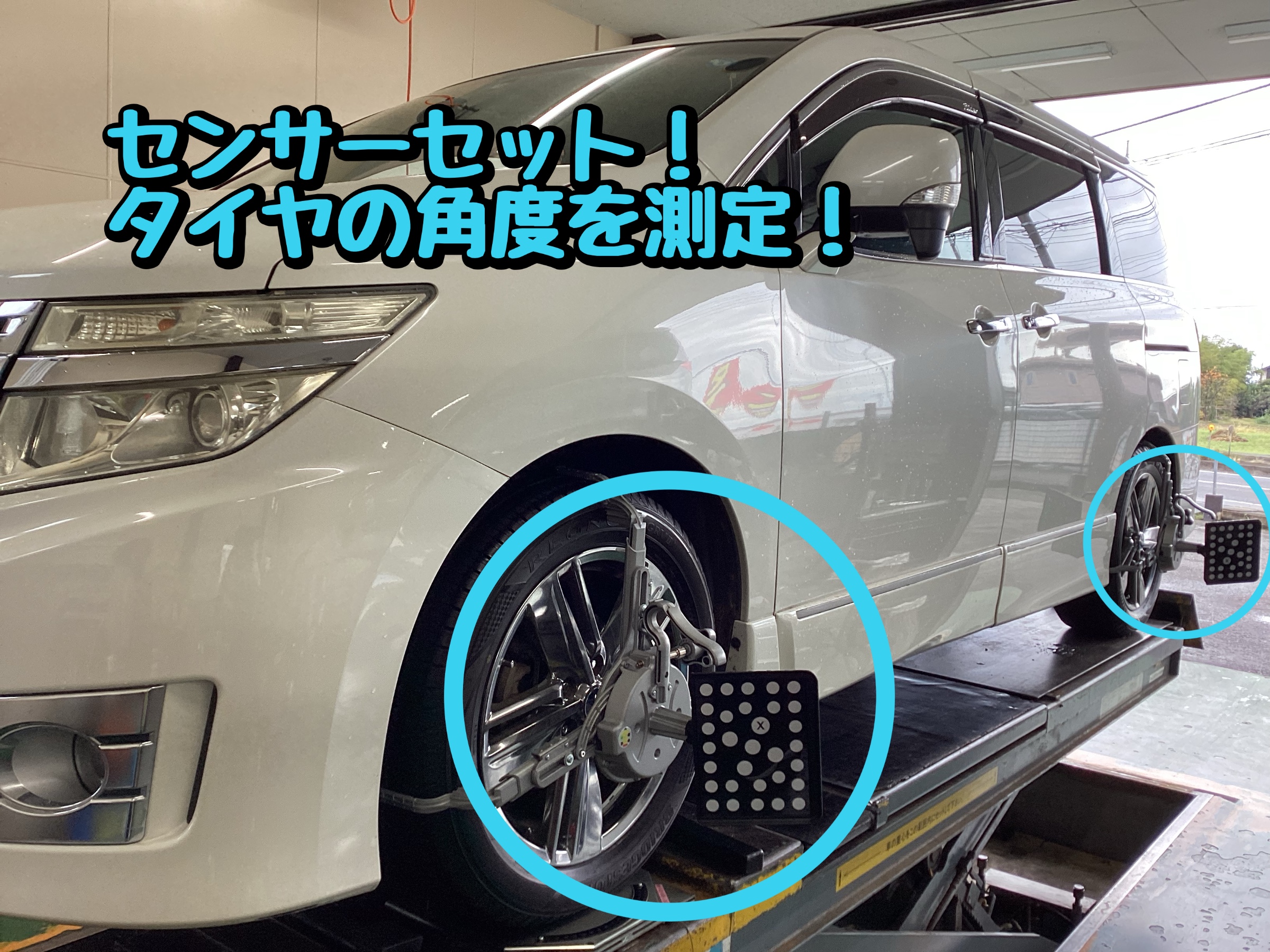 【E52系エルグランド】アライメントははタイヤ交換とセットでお得!【アプリ登録でクーポン使えます!】