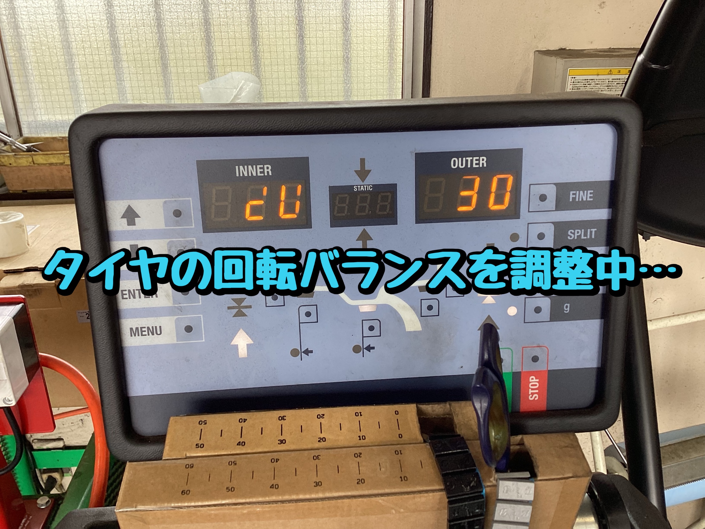 バランス調整とは、空気を充填したタイヤ・ホイールを専用の機械に取り付けて回転させ計測し、