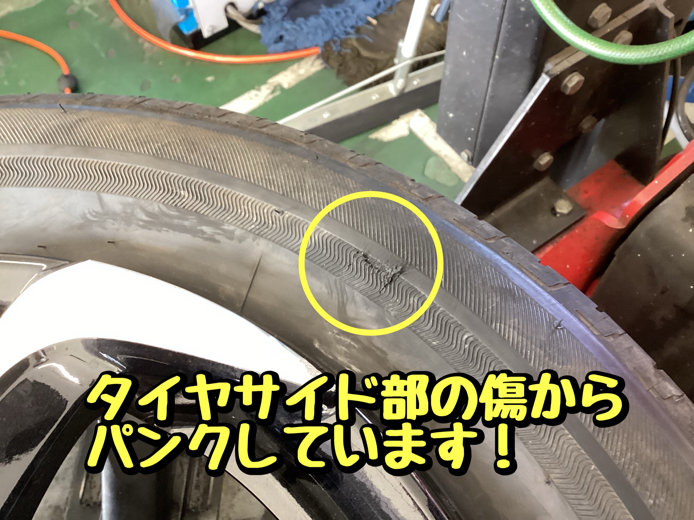 サイド部からのパンクはパンク修理はできず、タイヤ交換になります!