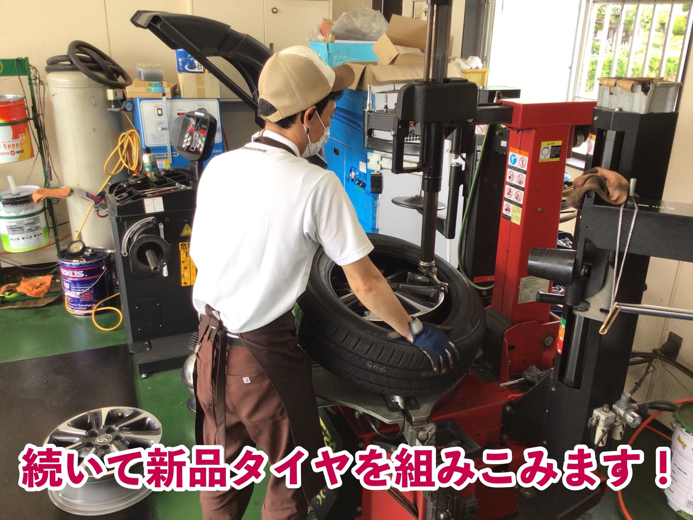 まずは古いタイヤをホイールから外し、ホイール清掃、バルブ(空気の出入り口になる部品)を交換します!