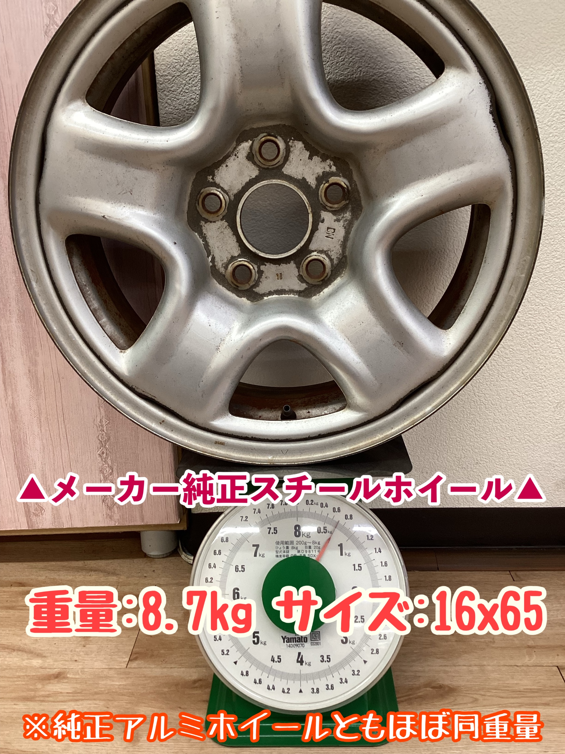 アルミホイールとスチールホイールの重さを計って比べてみました!