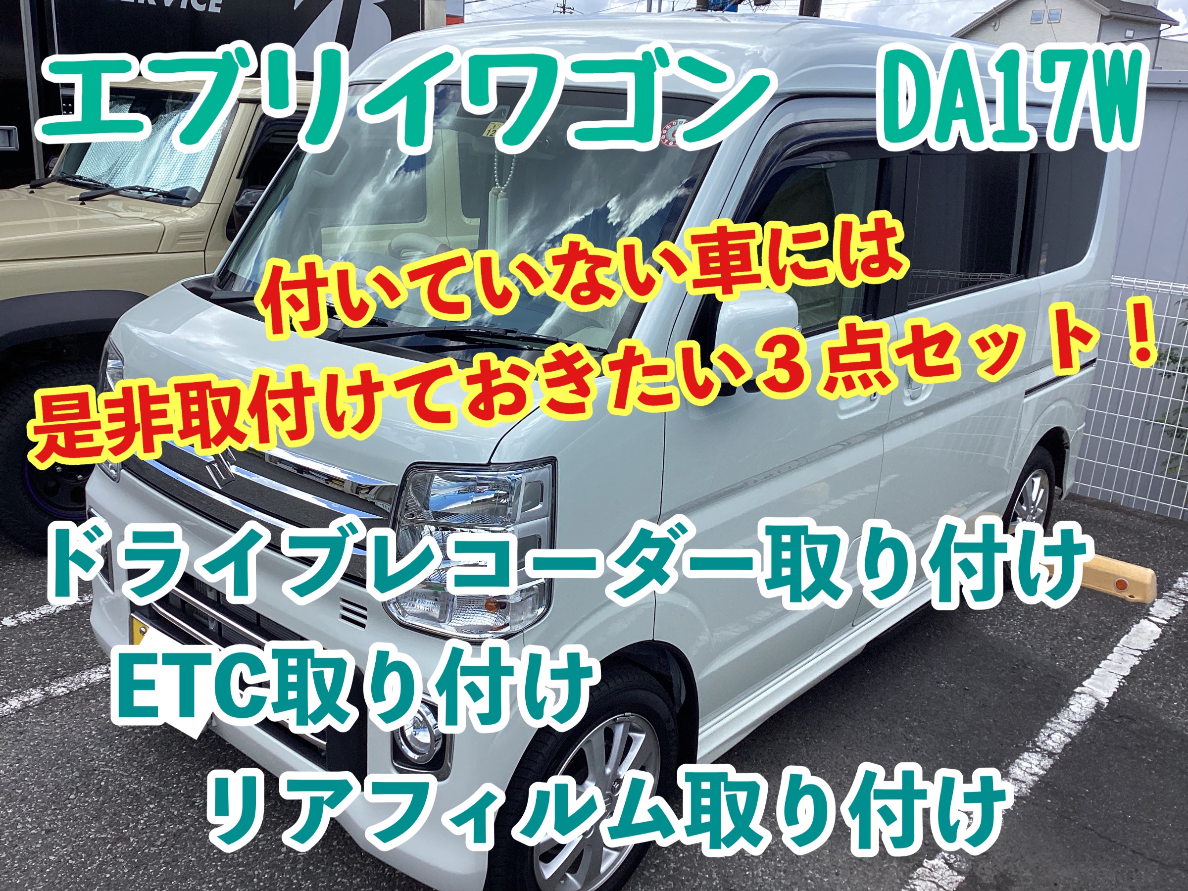 【エブリイワゴン】付いていない車には是非取付けておきたい3点セット!【ドライブレコーダー取り付け&ETC取り付け&リアフィルム施工】