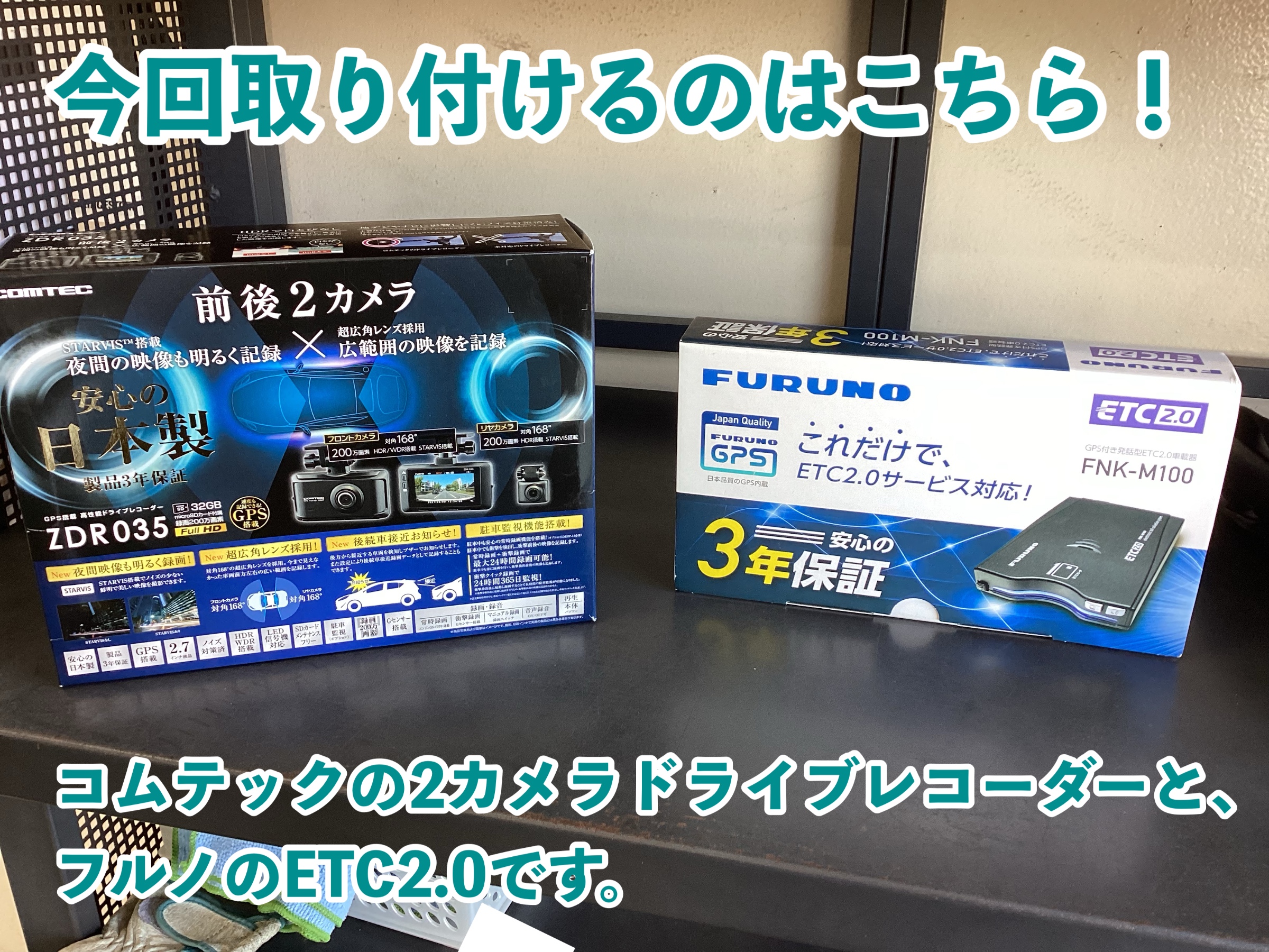 2カメラレコーダーはコムテックのZDR035。