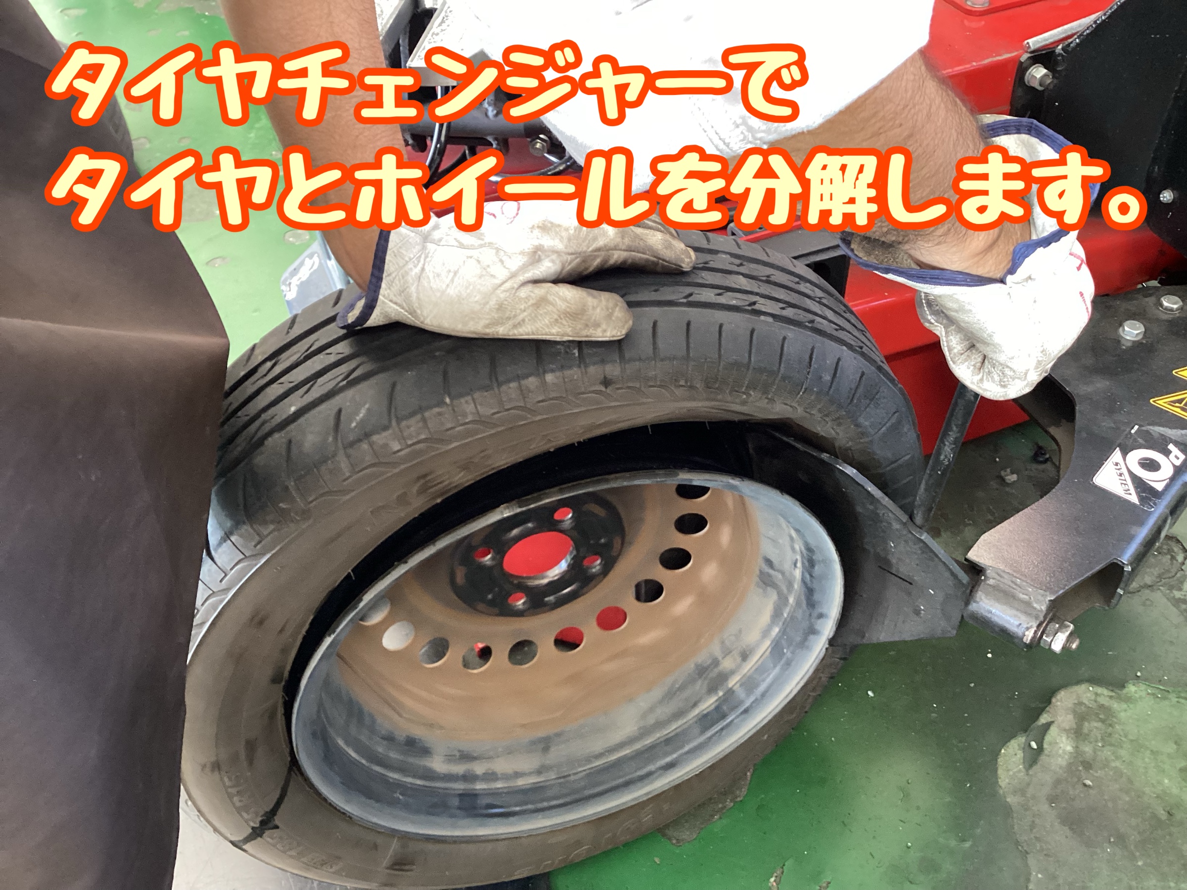 まずは古いタイヤをホイールから外し、ホイール清掃、