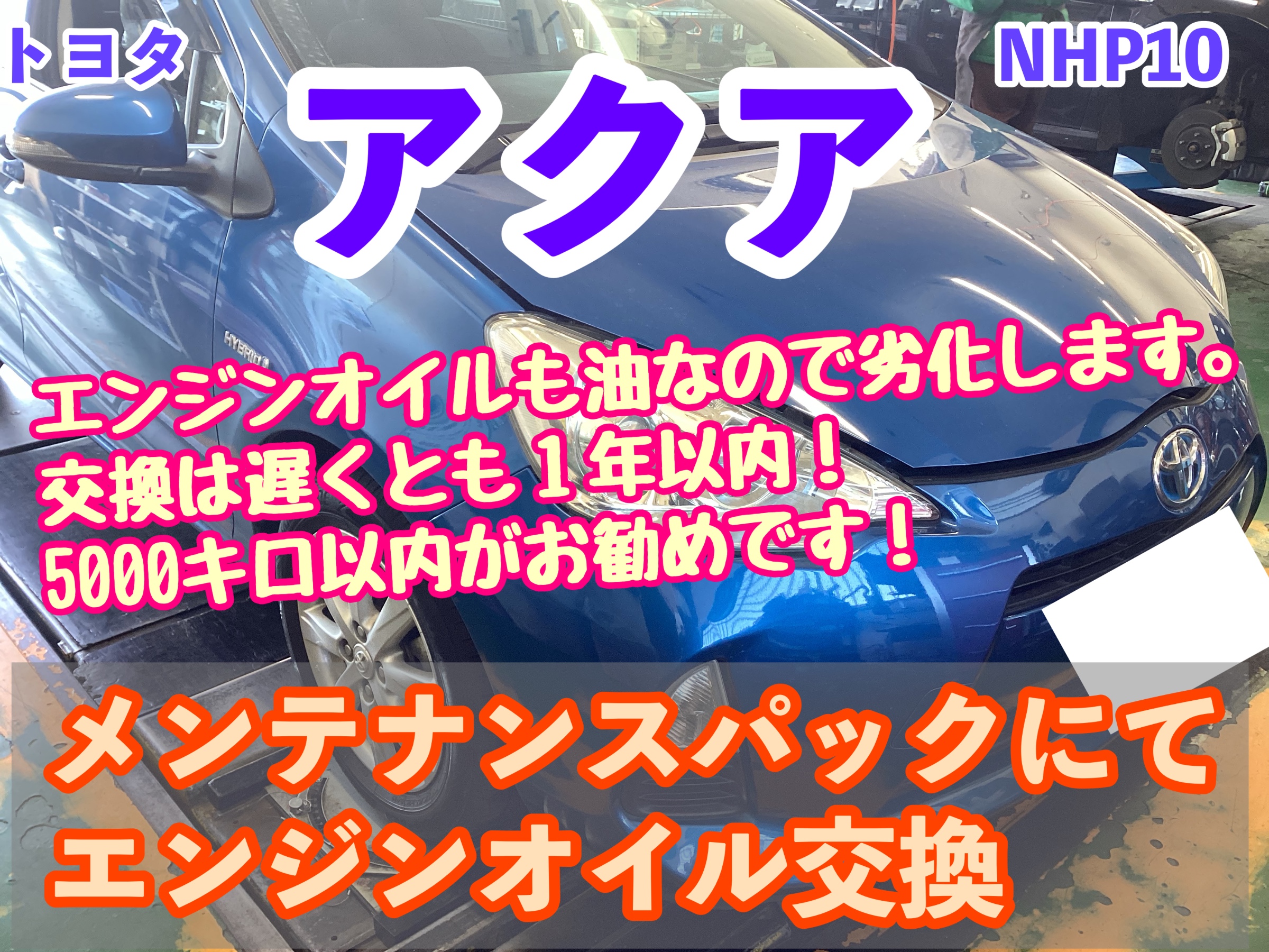 【トヨタ アクア NHP10】エンジンオイルも油なので劣化します。交換は遅くとも1年以内!5000キロ以内がお勧めです!【メンテナンスパックにてエンジンオイル交換】★久喜市・白岡市・菖蒲★