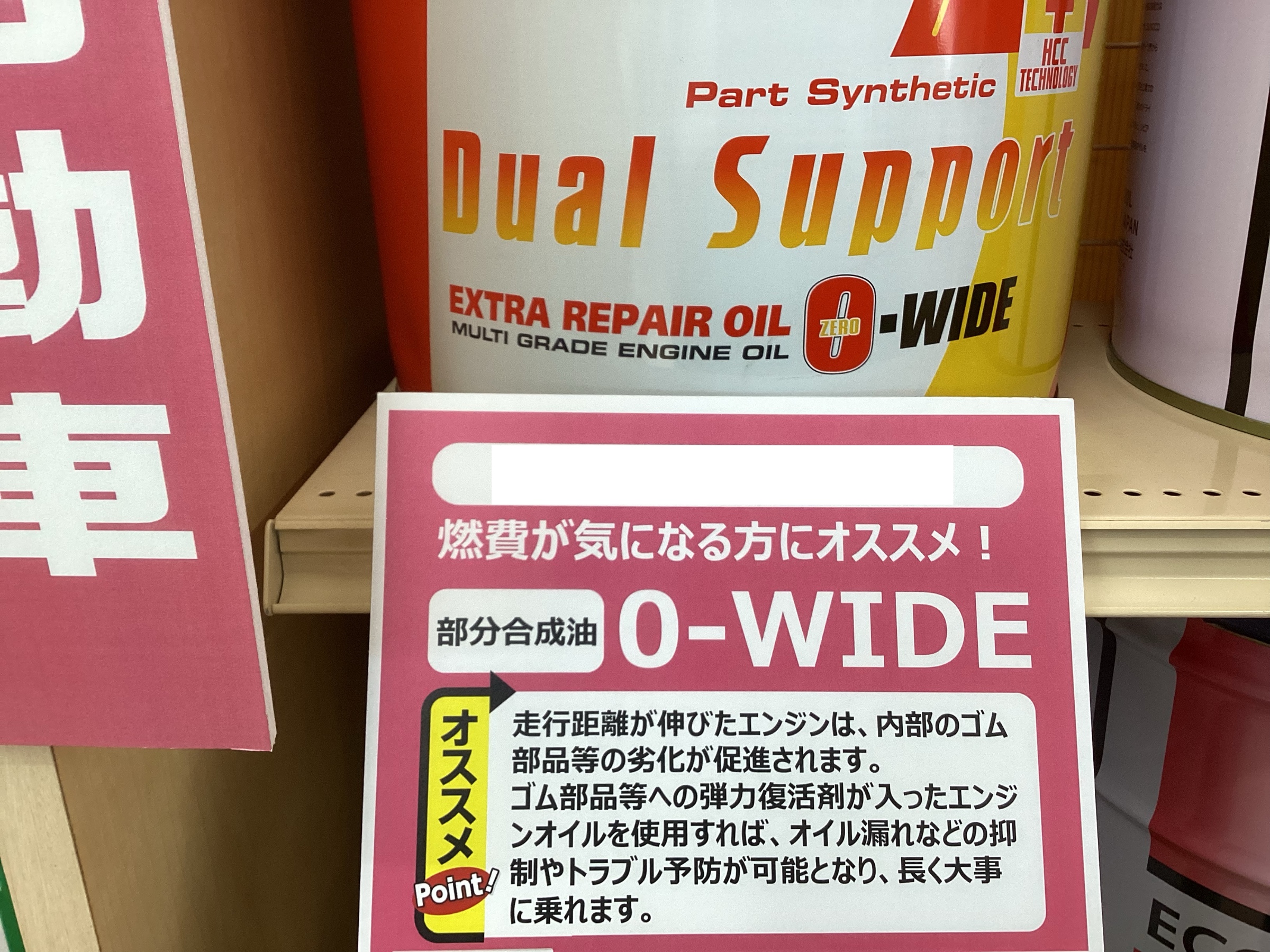 今回使用したエンジンオイルは省燃費性能に優れた「デュアルサポート0-WIDE」です。