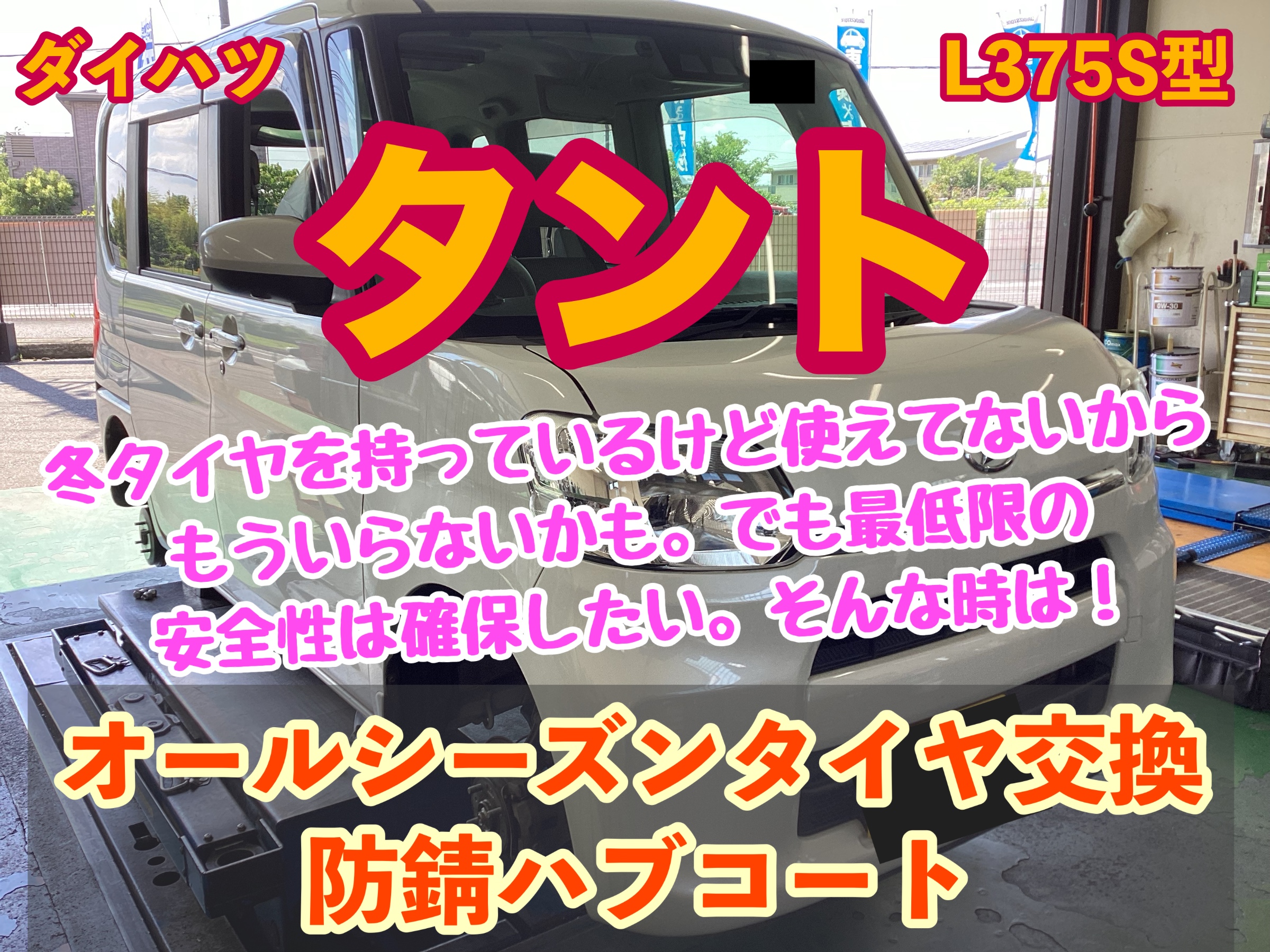 【ダイハツ タント L375S型】冬タイヤを持っているけど使えてないからもういらないかも。でも最低限の安全性は確保したい。そんな時は!【オールシーズンタイヤ交換・防錆ハブコート】★久喜市・白岡市・菖蒲★