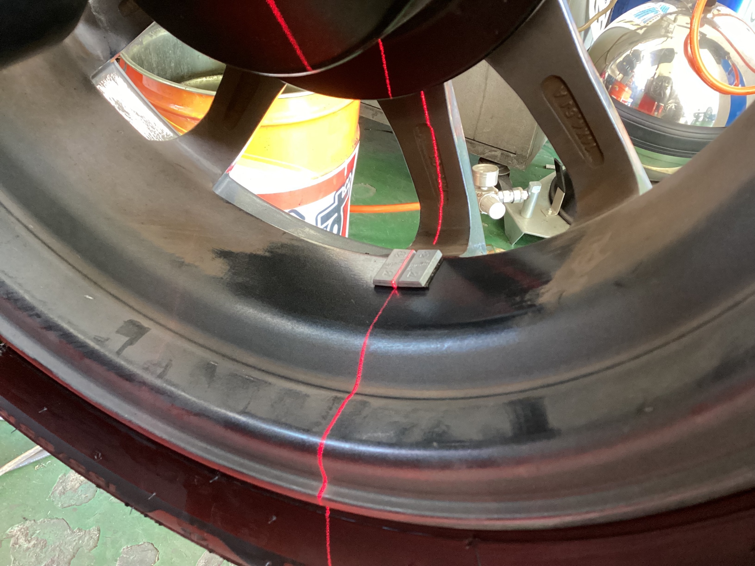 メーカー指定の圧力に調整したら、タイヤの回転バランスを調整します!