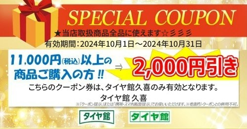 こちらのクーポン券は、タイヤ館 久喜のみ有効となります。