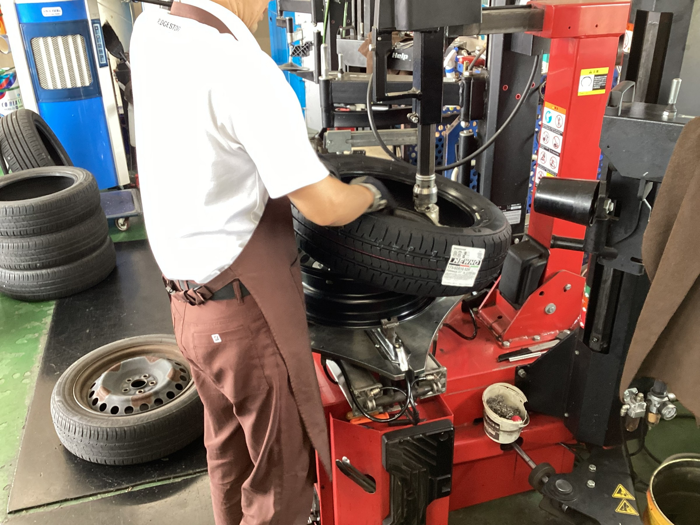 続いて新品タイヤを車両に取り付けます。