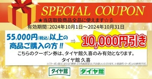 こちらのクーポン券は、タイヤ館 久喜のみ有効となります。