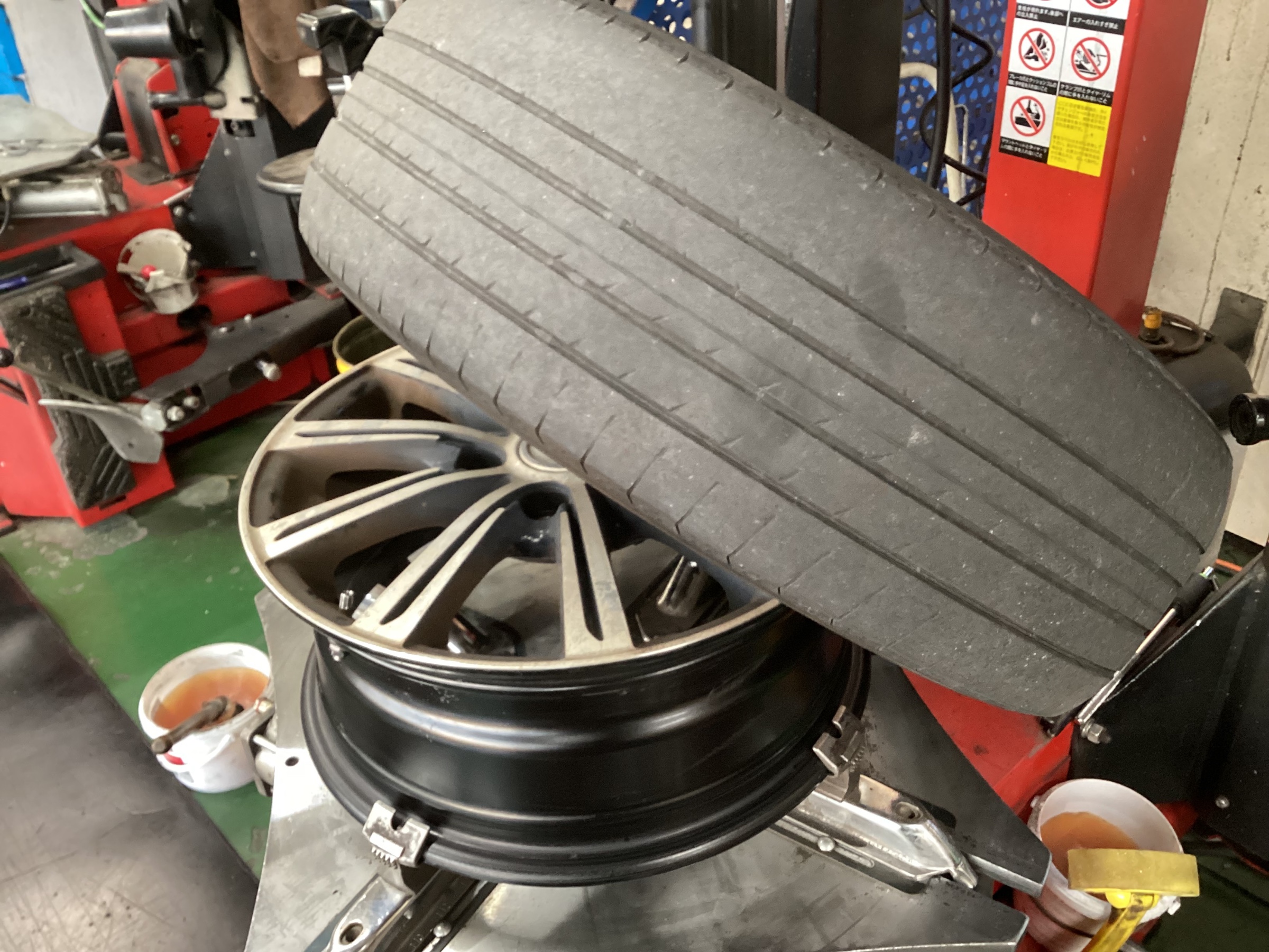作業はタイヤ交換、窒素ガス充填、ホイールバランス調整の順に行います。