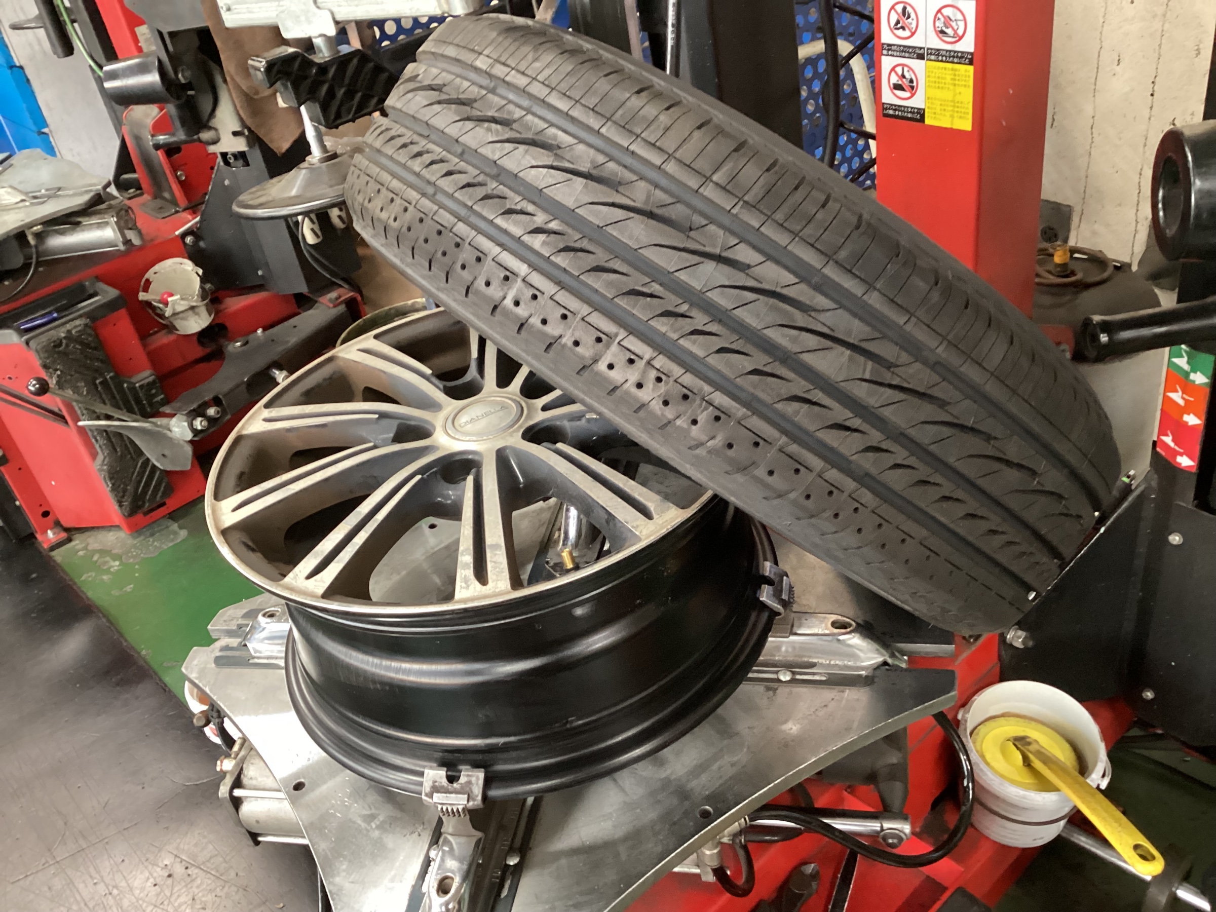次はタイヤチェンジャーで古いタイヤとホイールを分解します。