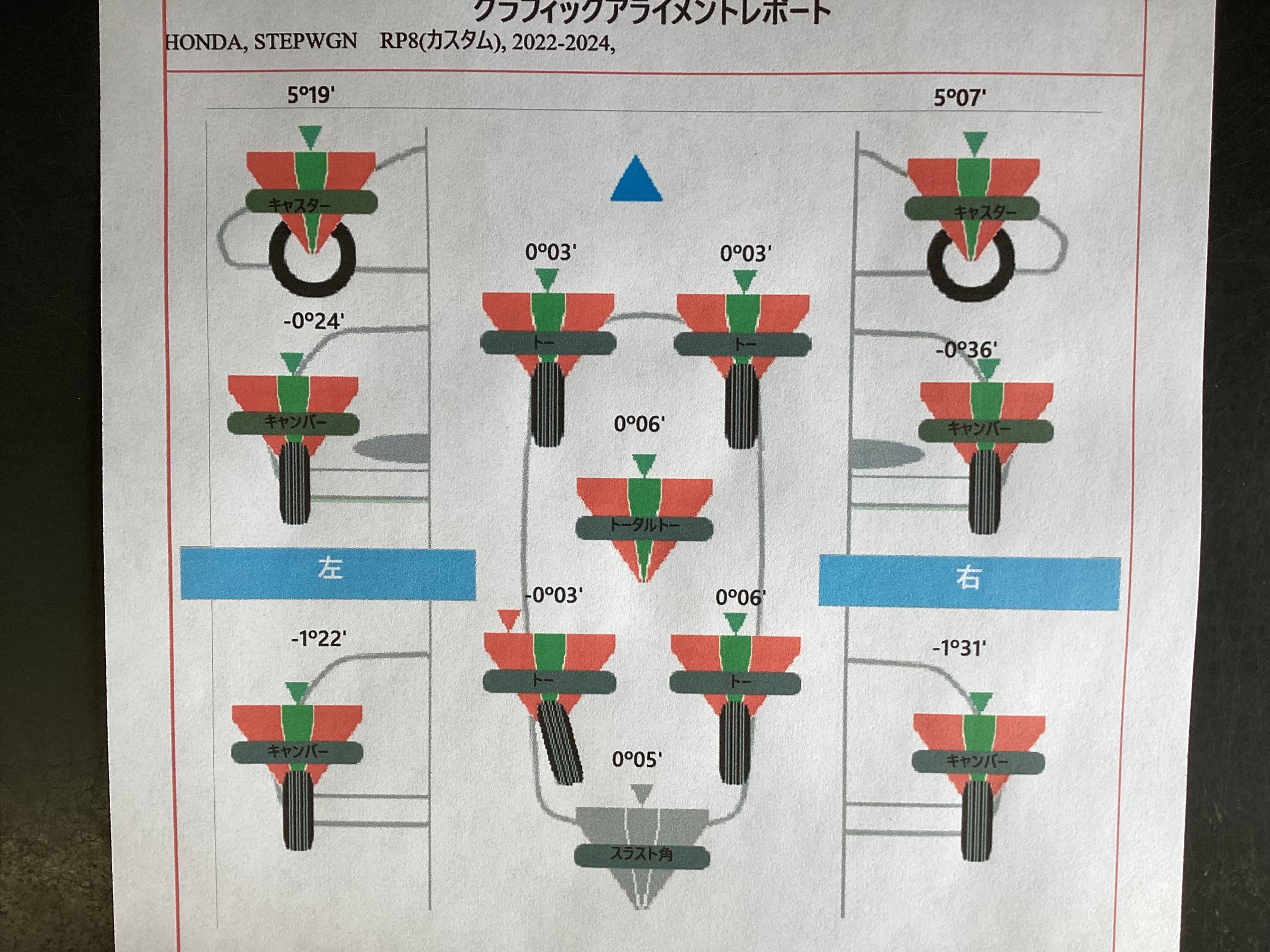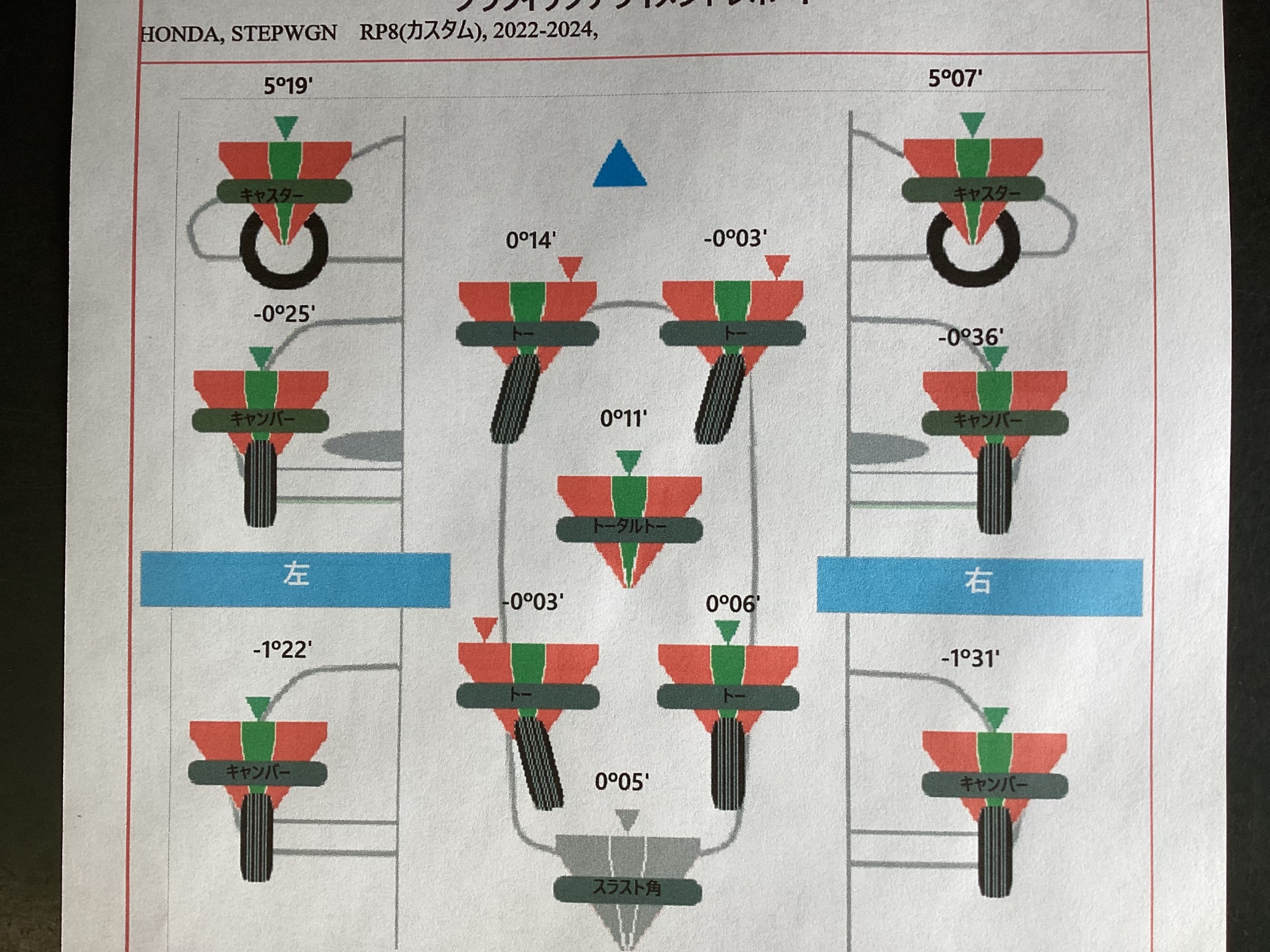 外側のキャンバー・キャスター数値は全て基準値内の上、