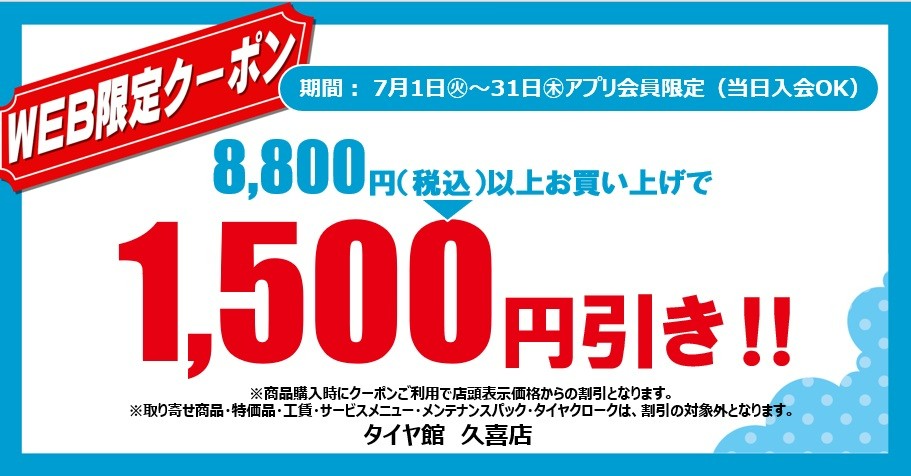 こちらのクーポン券は、タイヤ館 久喜のみ有効となります。
