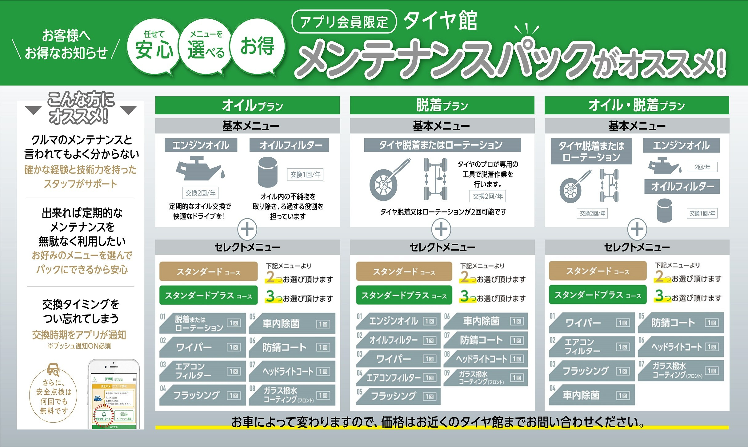 『アプリ会員限定・メンテナンスパック・オイルプラン』が