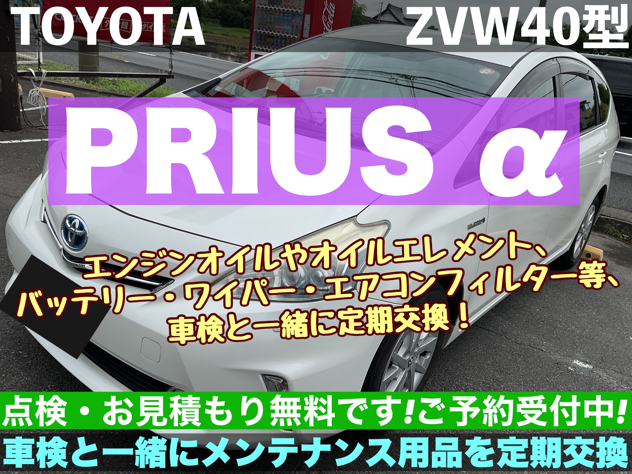 【トヨタ プリウスα ZVW40型】エンジンオイルやオイルエレメント、バッテリー・ワイパー・エアコンフィルター等、車検と一緒に定期交換!点検・お見積もり無料です!ご予約受付中!【車検と一緒にメンテナンス用品を定期交換】★久喜市・白岡市・菖蒲・加須市・鷲宮・幸手・蓮田・予約★