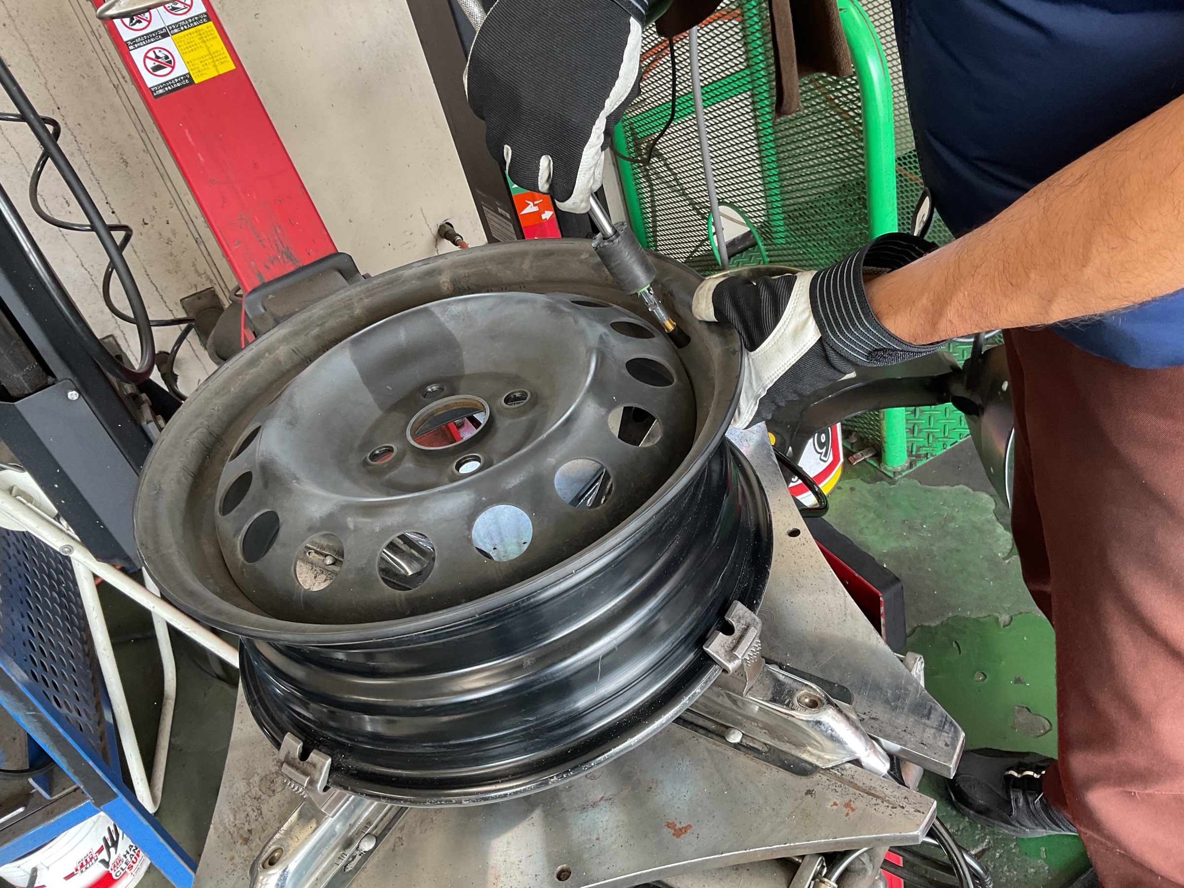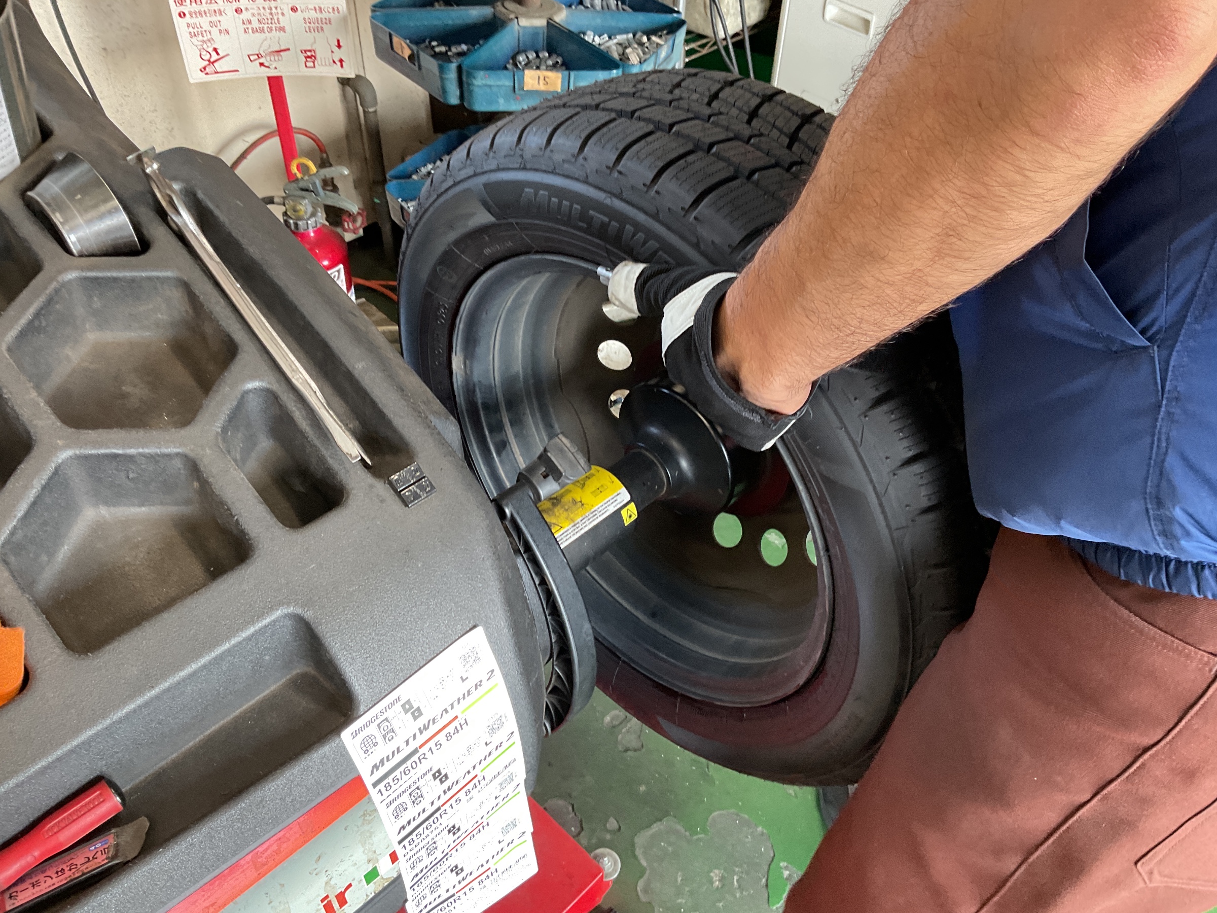 メーカー指定の圧力に調整したら、タイヤの回転バランスを調整します!
