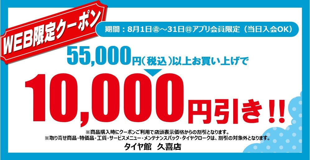こちらのクーポン券は、タイヤ館 久喜のみ有効となります。