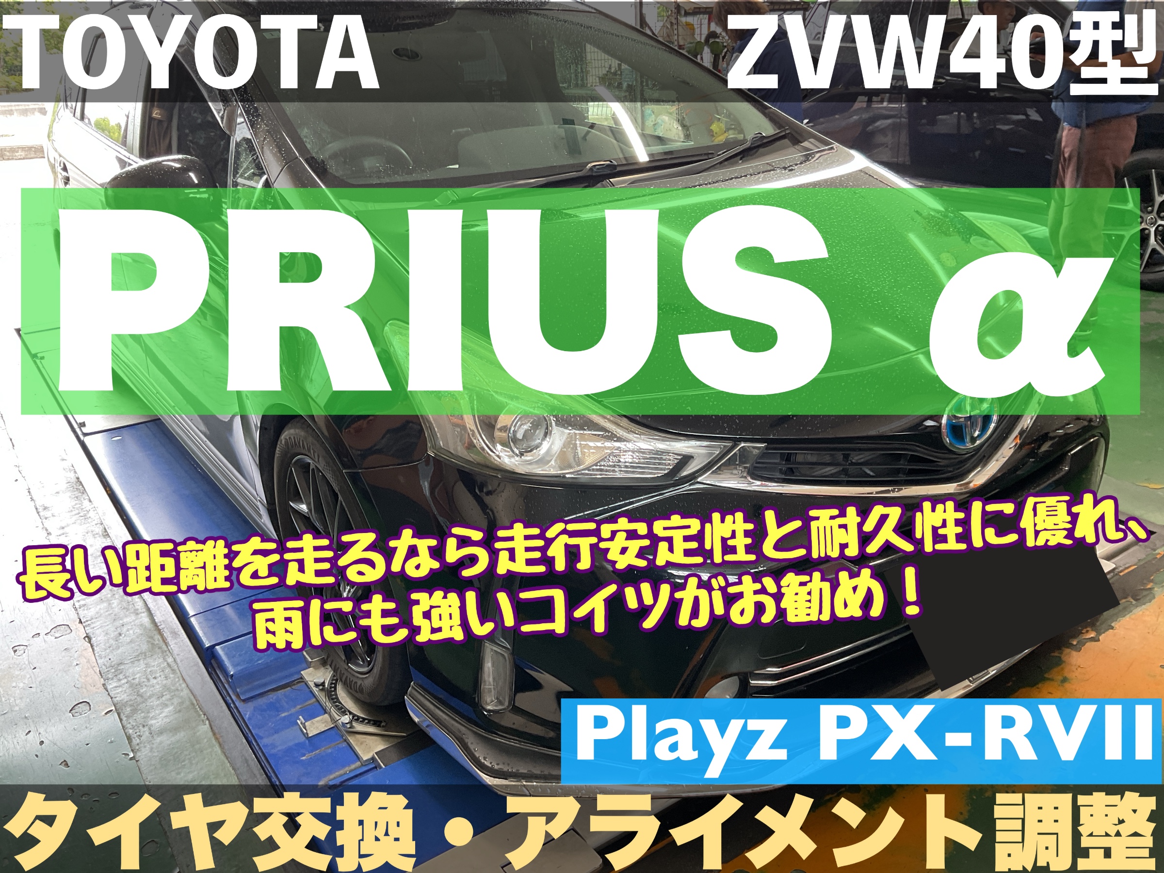 【トヨタ プリウスα ZVW40型】長い距離を走るなら走行安定性と耐久性に優れ、雨にも強いコイツがお勧め!Playz PX-RVII【タイヤ交換・アライメント調整】★久喜市・加須市・白岡市・菖蒲・鷲宮・幸手・蓮田・予約★