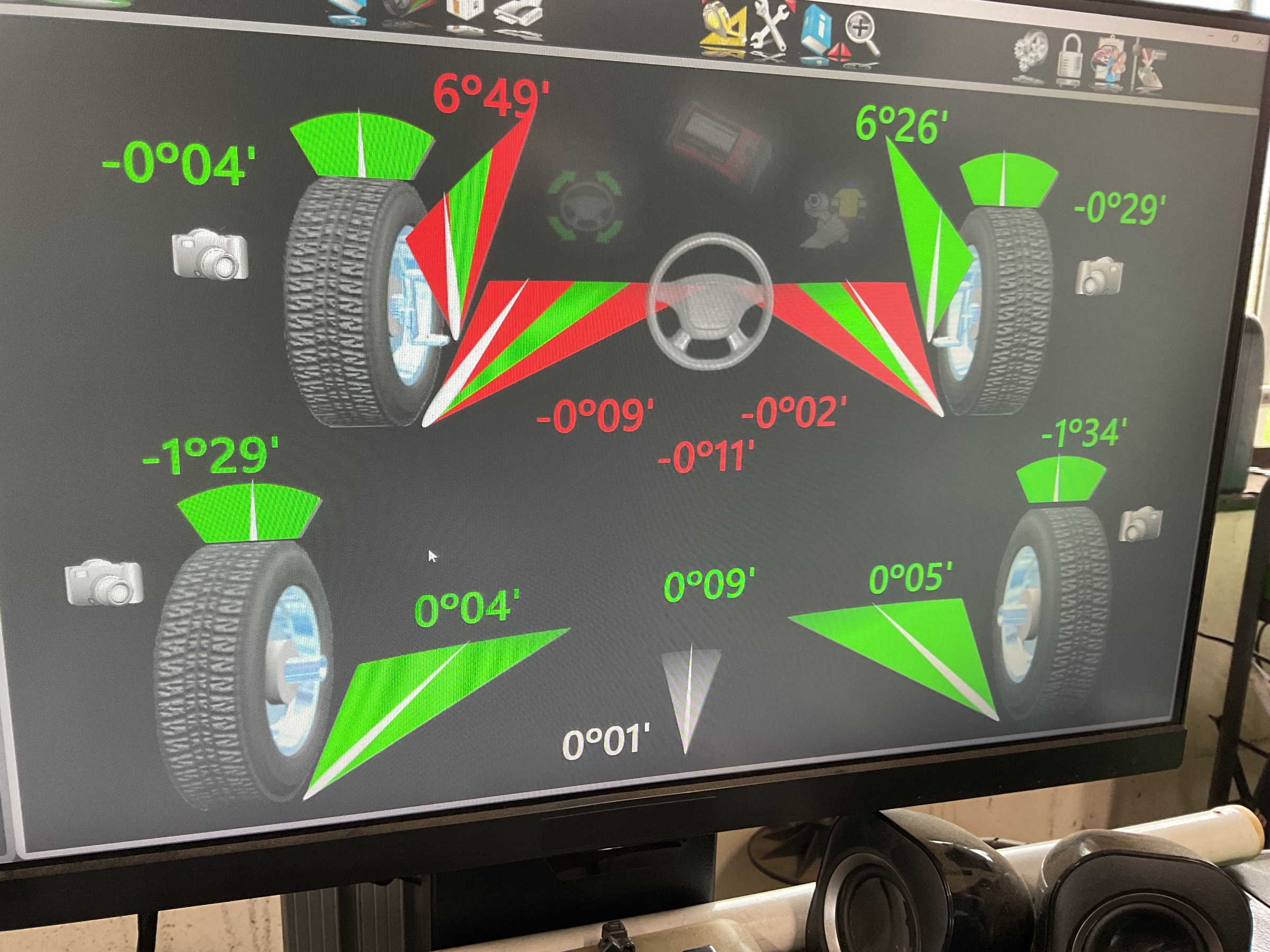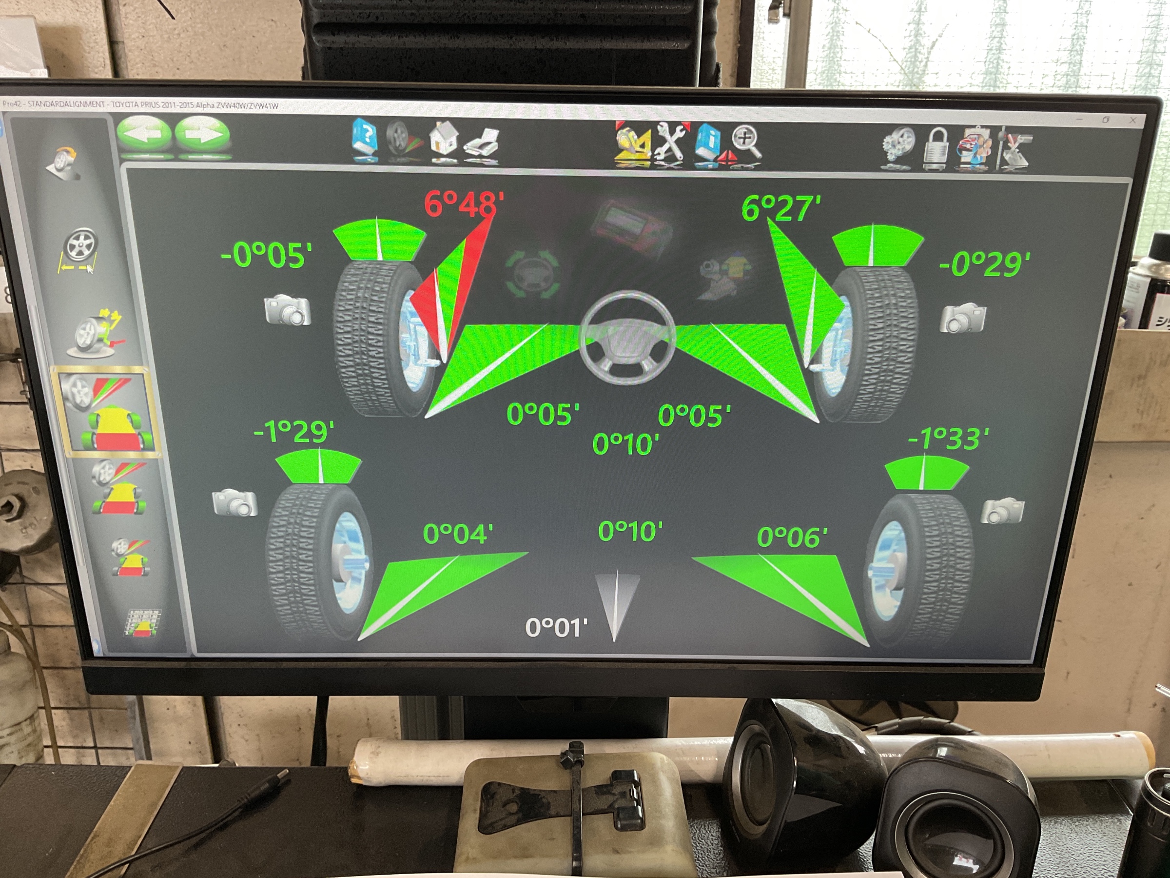ハンドルセンターを合わせ、左右の数値を改善していきます。