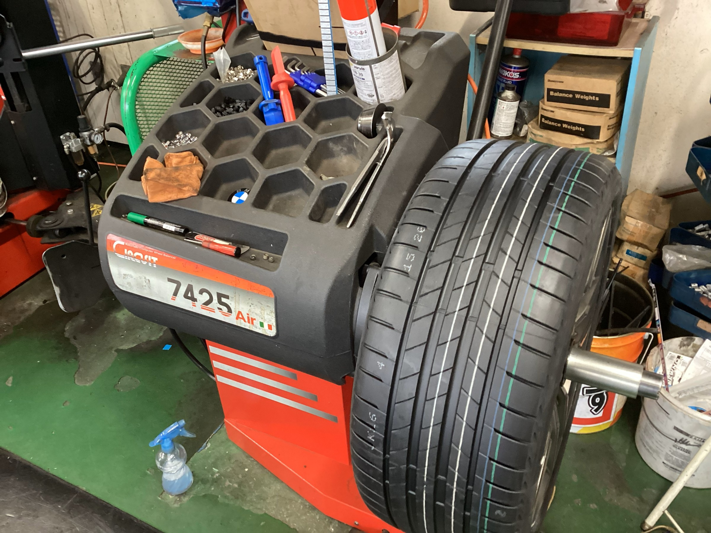 作業はタイヤ交換、窒素ガス充填、ホイールバランス調整の順に行います。