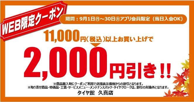 こちらのクーポン券は、タイヤ館 久喜のみ有効となります。
