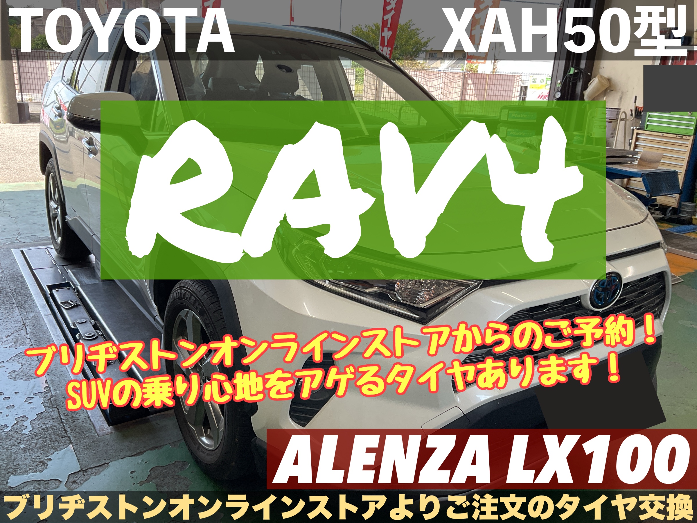 【トヨタ RAV4 XAH50型】ブリヂストンオンラインストアからのご予約!SUVの乗り心地をアゲるタイヤあります!ALENZA LX100【ブリヂストンオンラインストアよりご注文のタイヤ交換】★久喜市・加須市・白岡市・菖蒲・鷲宮・幸手・蓮田・予約★