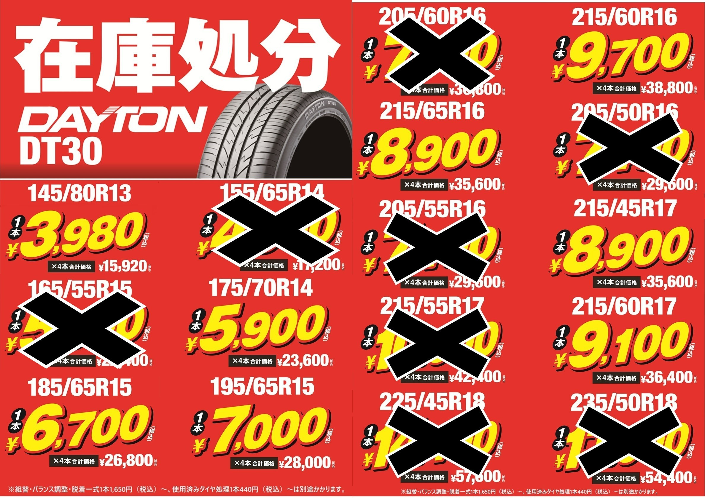 ※最終処分なのでタイヤは「4本セットのみ」での販売です。