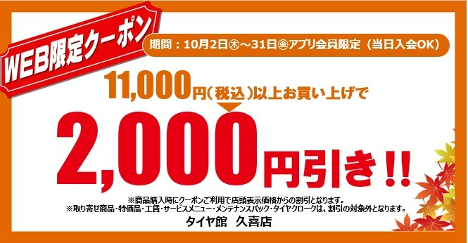 こちらのクーポン券は、タイヤ館 久喜のみ有効となります。