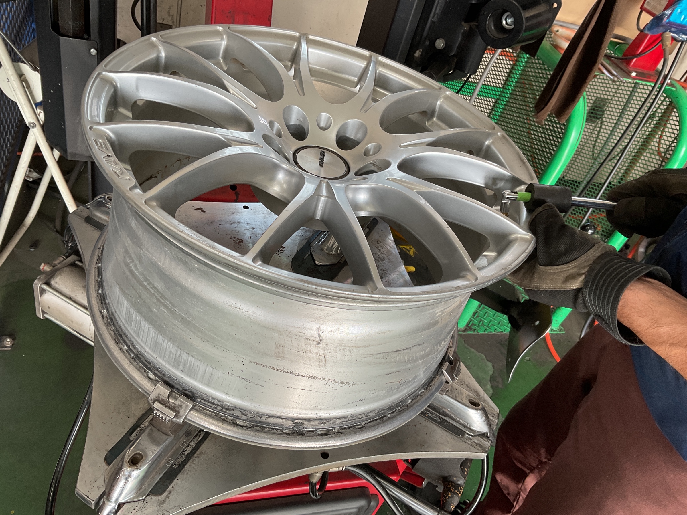 作業はタイヤ交換、窒素ガス充填、ホイールバランス調整の順に行います。