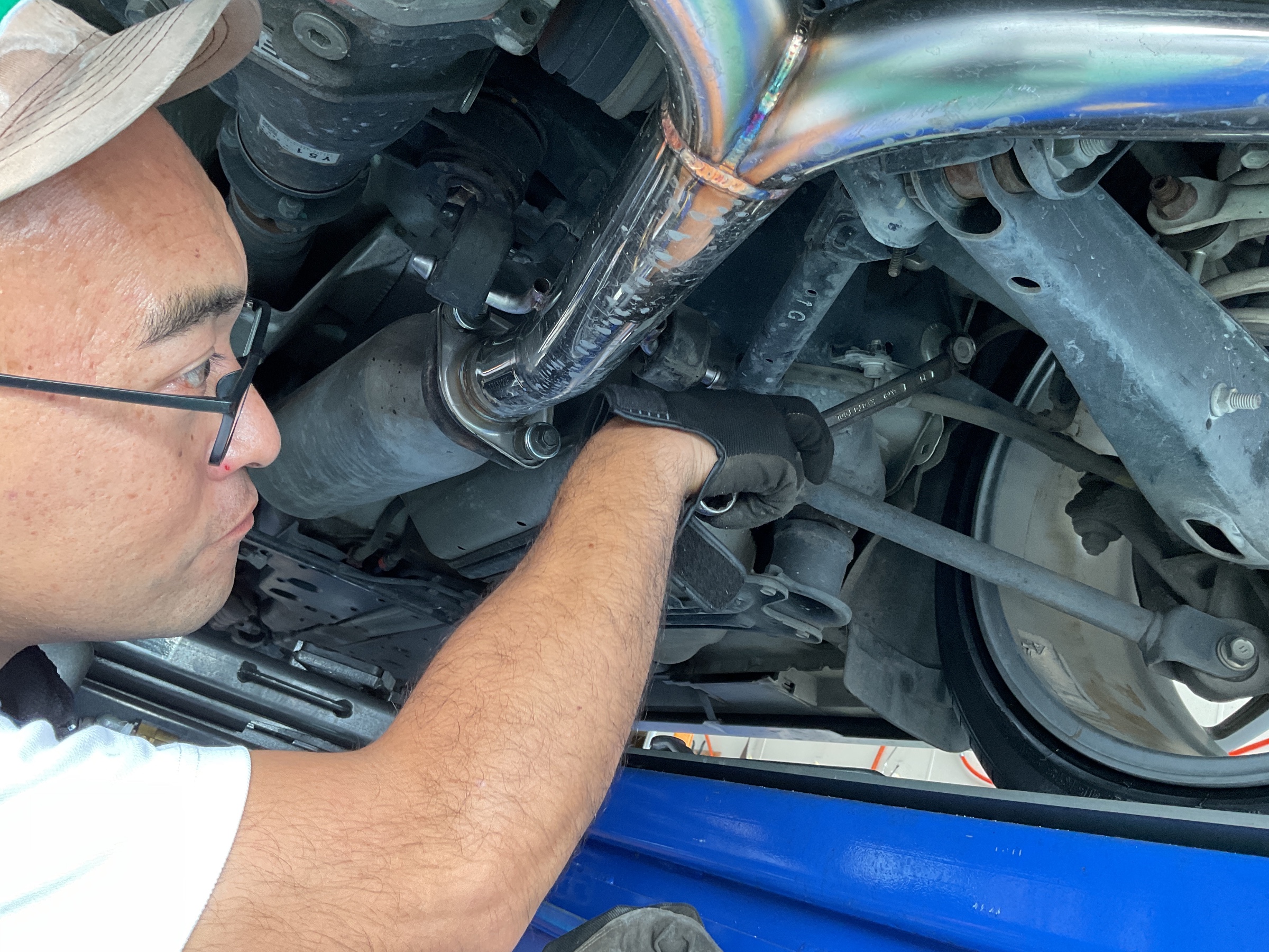 アライメント調整では、お客様のお車に合わせその足廻りの微妙な角度の歪みを調整します。