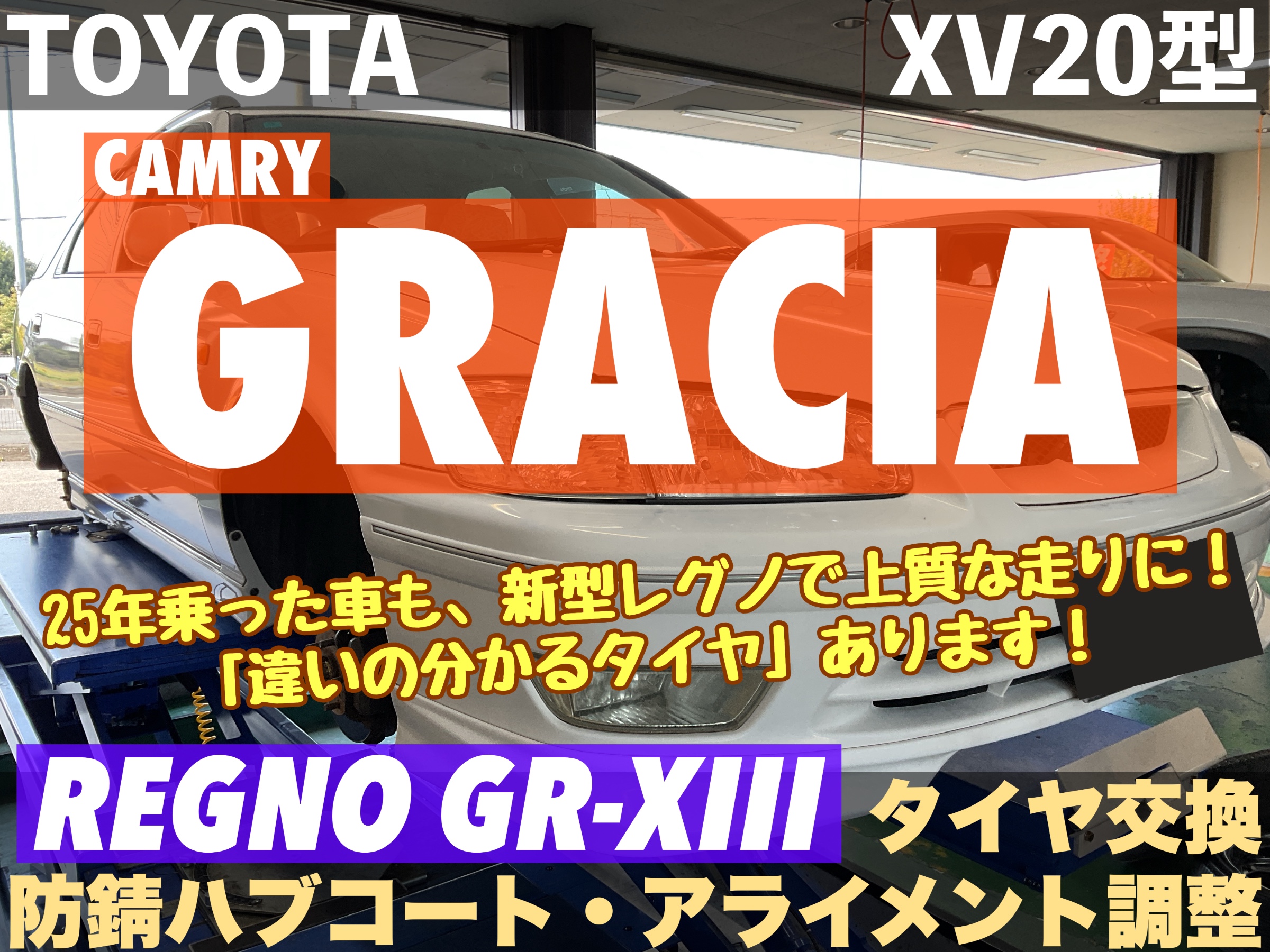 【トヨタ カムリグラシア XV20型】25年乗った車も、新型レグノで上質な走りに!「違いの分かるタイヤ」あります!REGNO GR-XIII【タイヤ交換・防錆ハブコート・アライメント調整】★久喜市・白岡市・菖蒲・加須市・鷲宮・幸手・蓮田・予約★