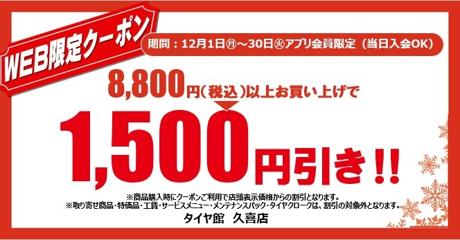 こちらのクーポン券は、タイヤ館 久喜のみ有効となります。