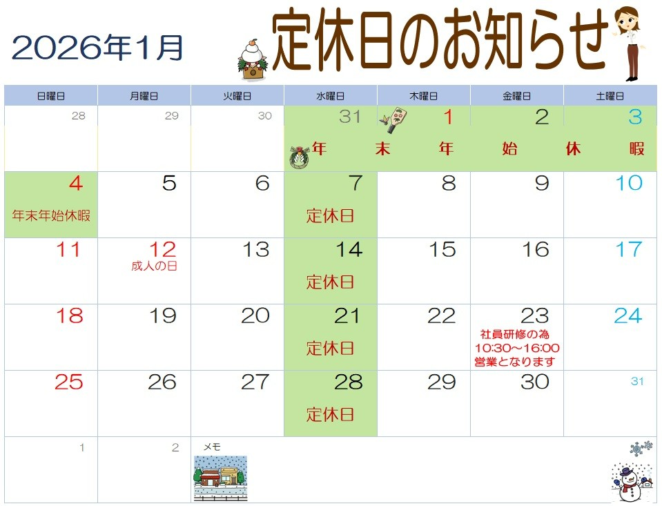 ▶本日は定休日です ポスト 2026年1月21日 日頃より当店をご利用頂き誠にありがとうございます! 本日は定休日になります。 恐れ入りますが、御用の場合は明日以降にご来店ください。 営業時間 :午前の部 10:30~12:45 午後の部 13:30~19:00 (最終作業受付18:30まで) ご迷惑をおかけしますが、ご来店の際は営業日の確認をお願い致します。 カテゴリ:お知らせ