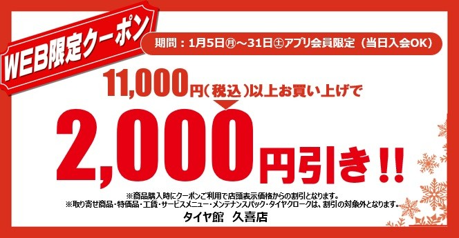 こちらのクーポン券は、タイヤ館 久喜のみ有効となります。