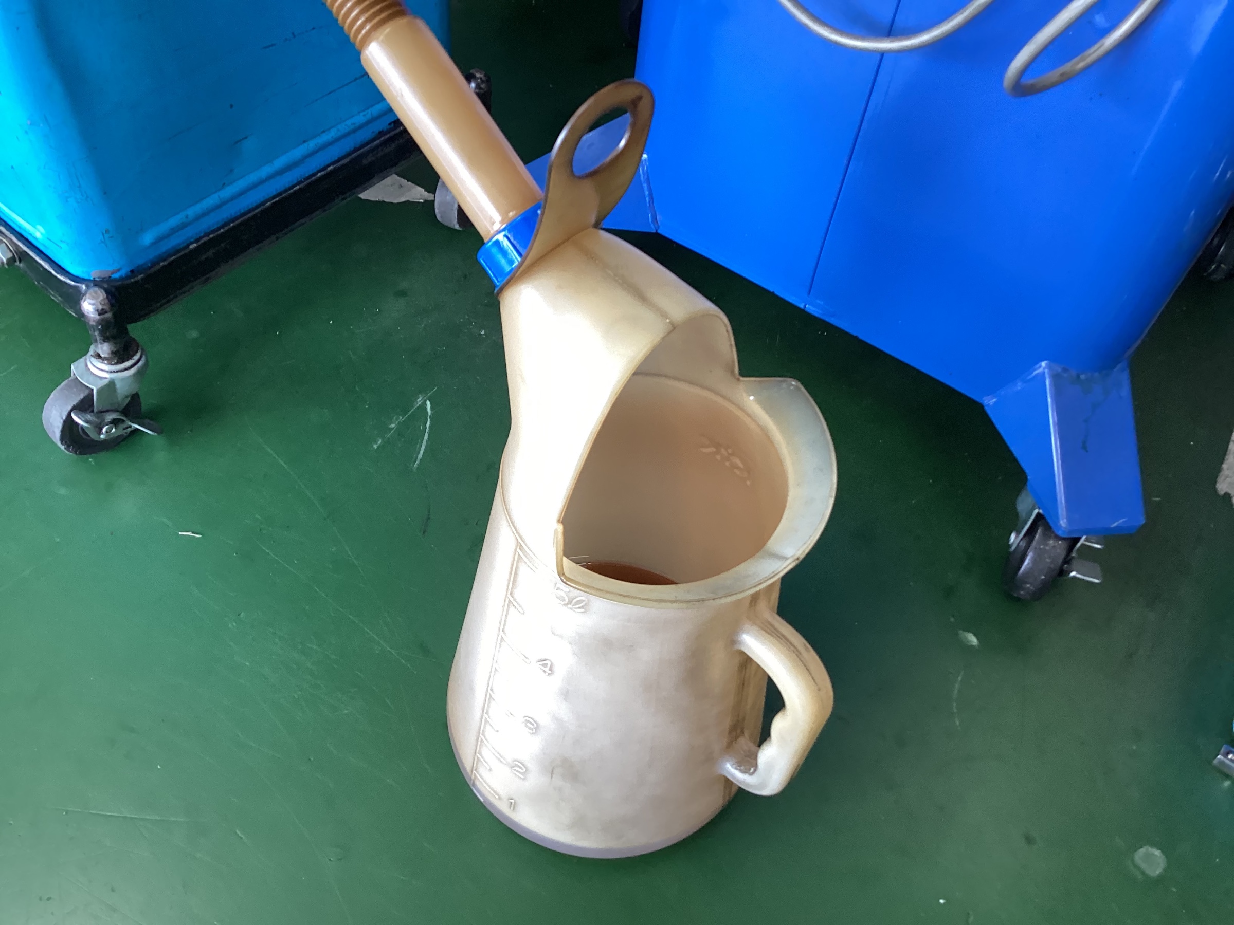 オイルジョッキで周囲にオイルがたれないように気をつけて交換します。