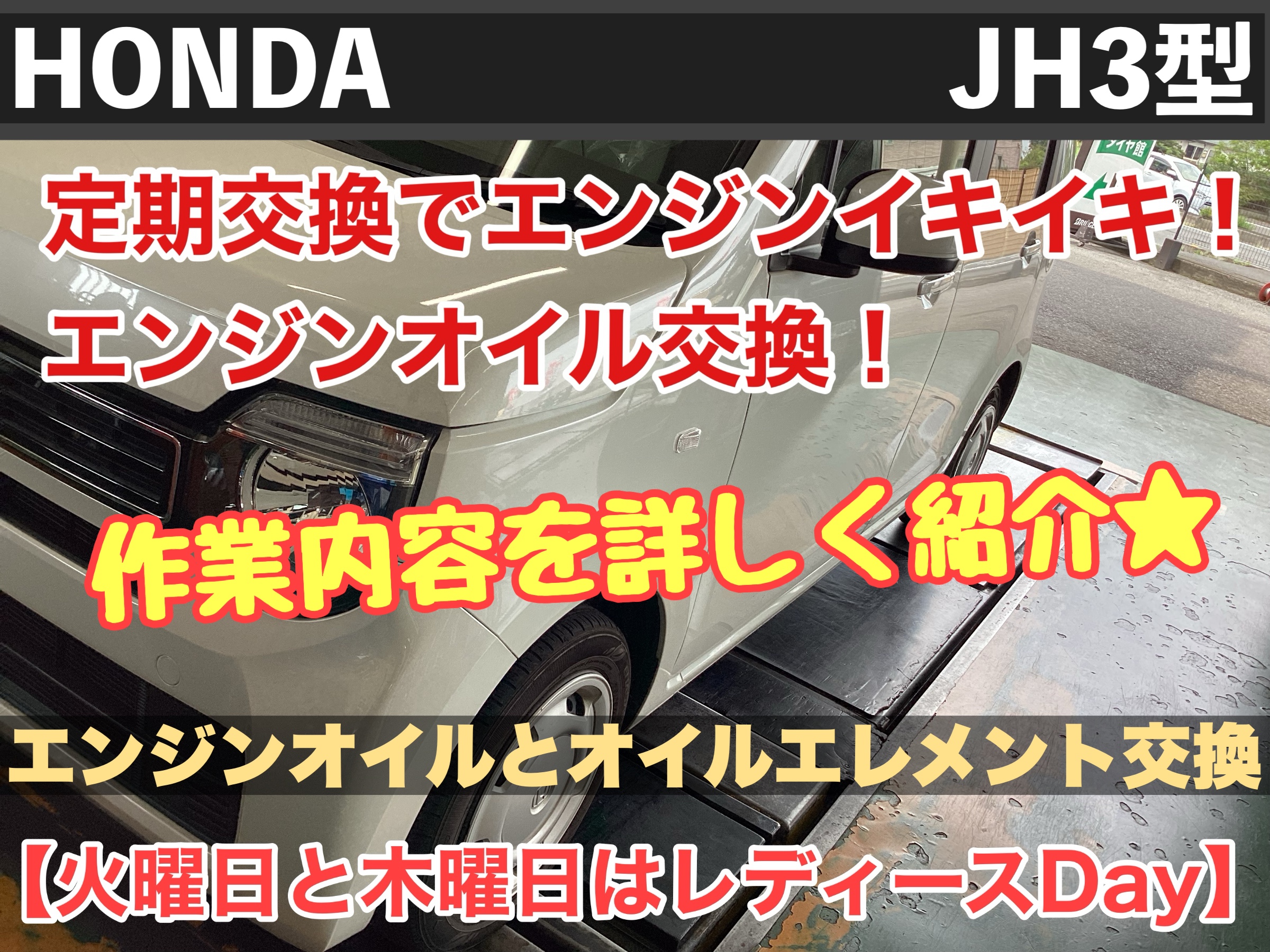 【ホンダ N-WGN JH3型】定期交換でエンジンイキイキ!エンジンオイル交換!作業内容を詳しく紹介★【火曜日と木曜日はレディースDay】★久喜市・加須市・白岡市・菖蒲・鷲宮・幸手・蓮田・予約★