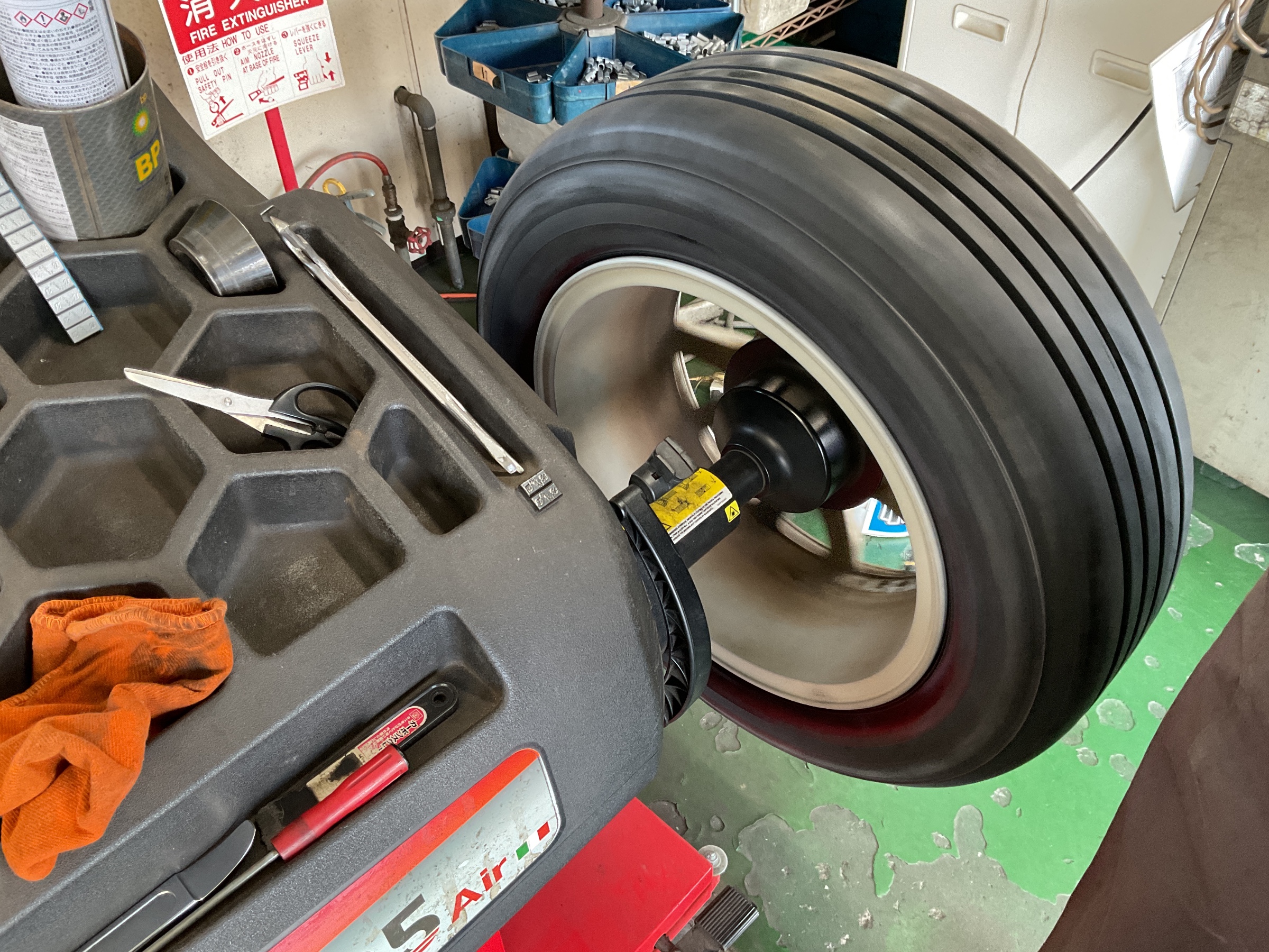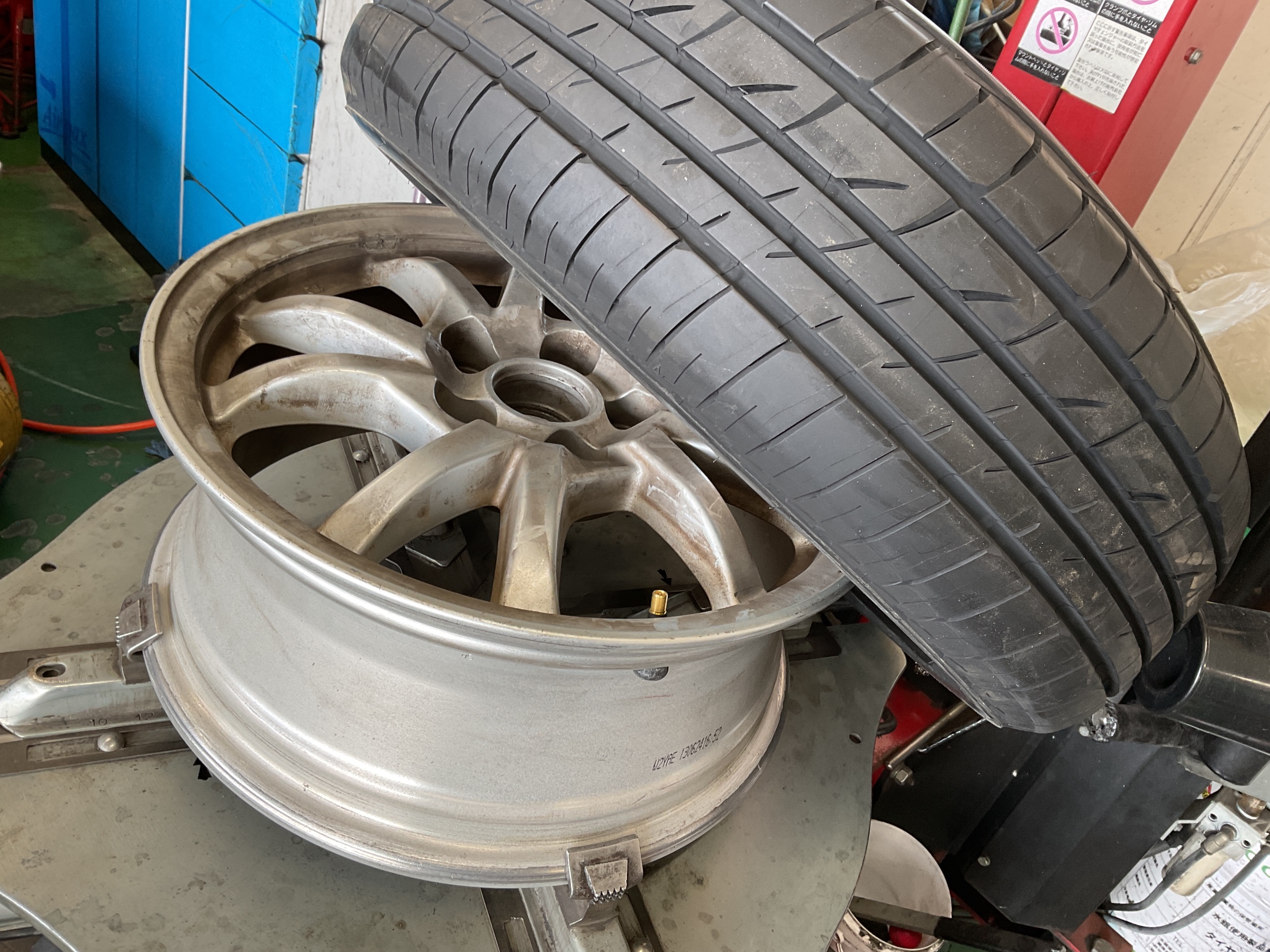 作業はタイヤ交換、空気充填、ホイールバランス調整の順に行います。