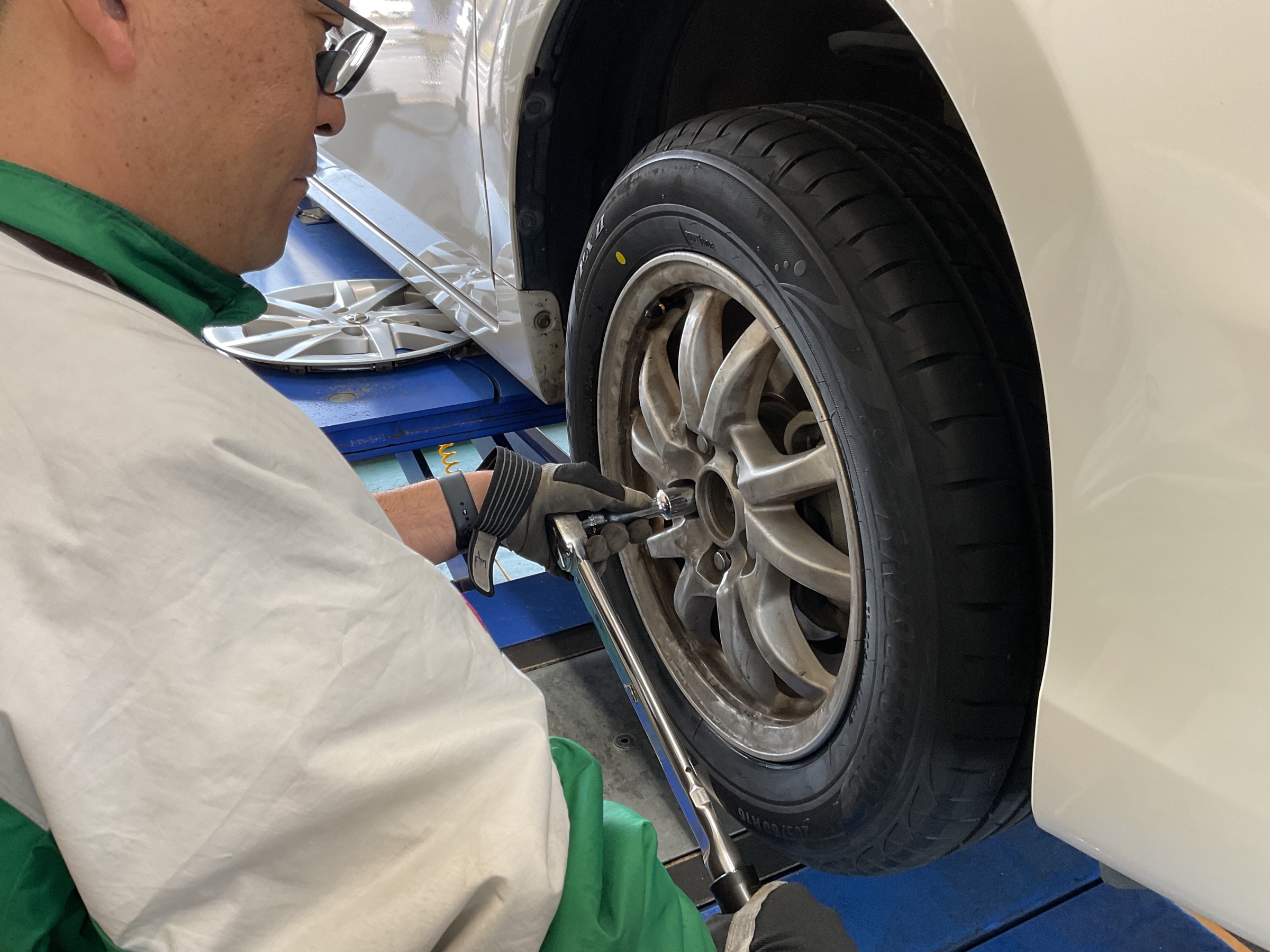 最後はお客様立会いで装着タイヤの確認と、ナットの締め付け確認を行い、
