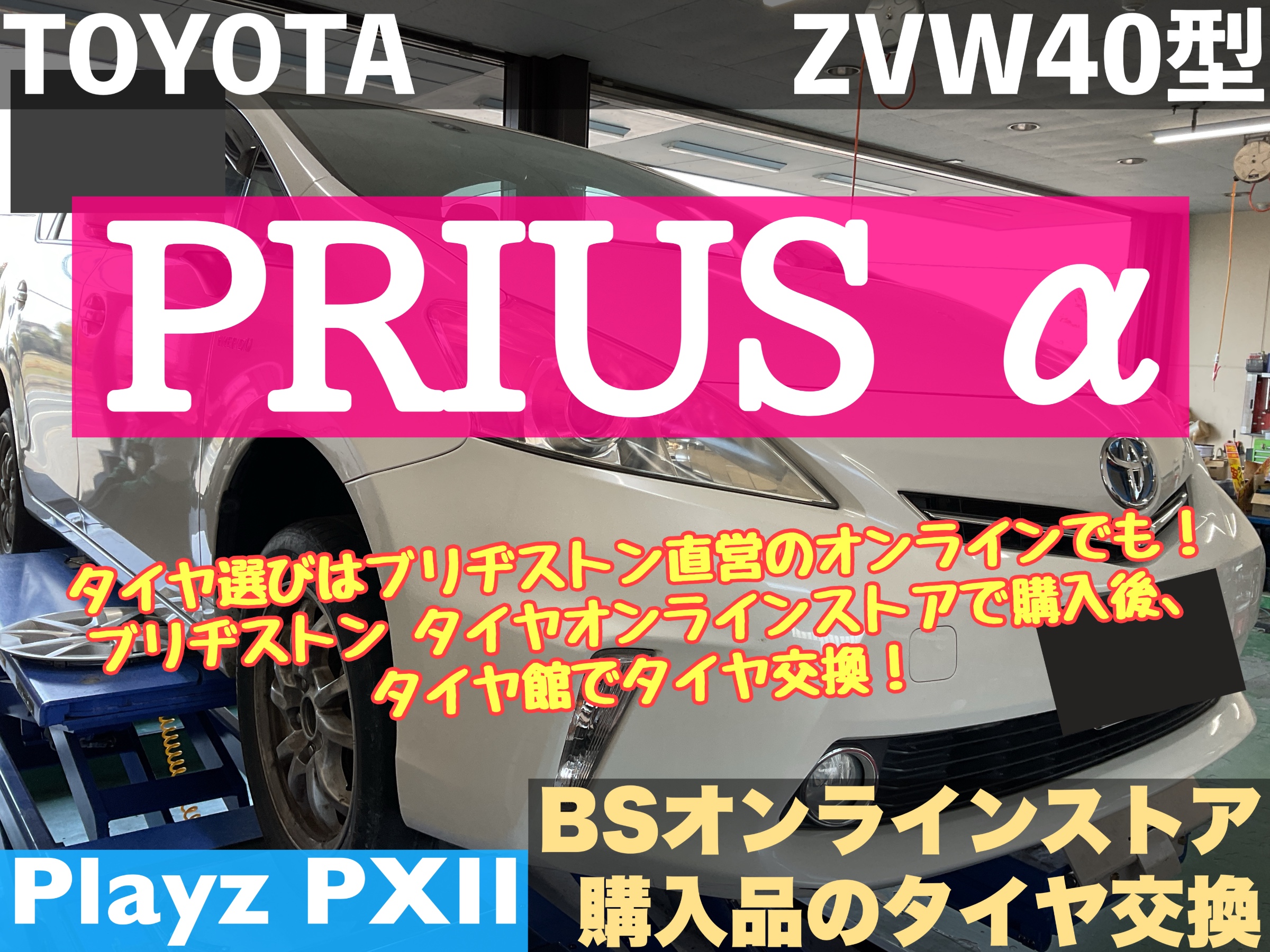 【トヨタ プリウスα ZVW40型】タイヤ選びはブリヂストン直営のオンラインでも!ブリヂストン タイヤオンラインストアで購入後、タイヤ館でタイヤ交換!Playz PXⅡ【BSオンラインストア購入品のタイヤ交換】★久喜市・白岡市・菖蒲・加須市・鷲宮・幸手・蓮田・予約★