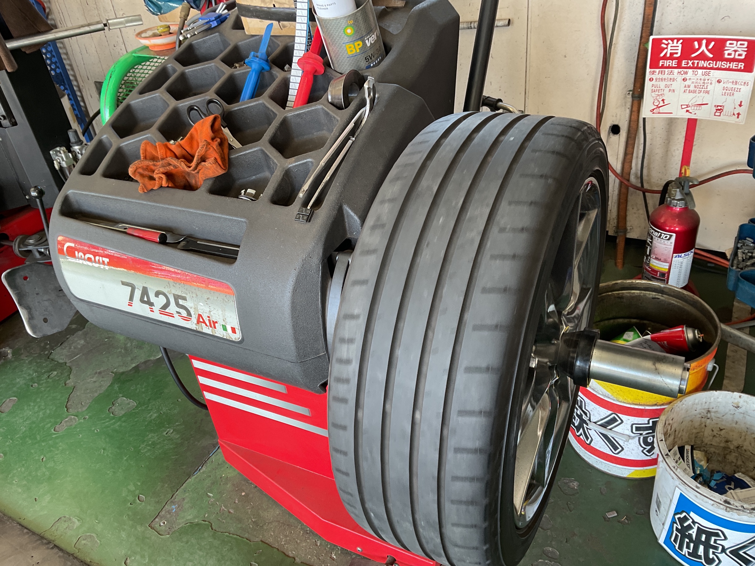 まずはタイヤ・ホイールを車両から外し、タイヤの状態を確認、