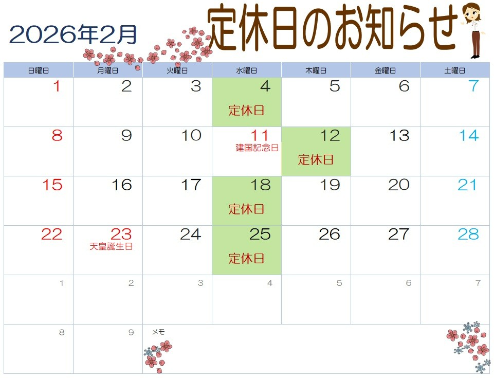 ▶本日は定休日です ポスト 2026年2月18日 日頃より当店をご利用頂き誠にありがとうございます! 本日は定休日になります。 恐れ入りますが、御用の場合は明日以降にご来店ください。 営業時間 :午前の部 10:30~12:45 午後の部 13:30~19:00 (最終作業受付18:30まで) ご迷惑をおかけしますが、ご来店の際は営業日の確認をお願い致します。 カテゴリ:お知らせ