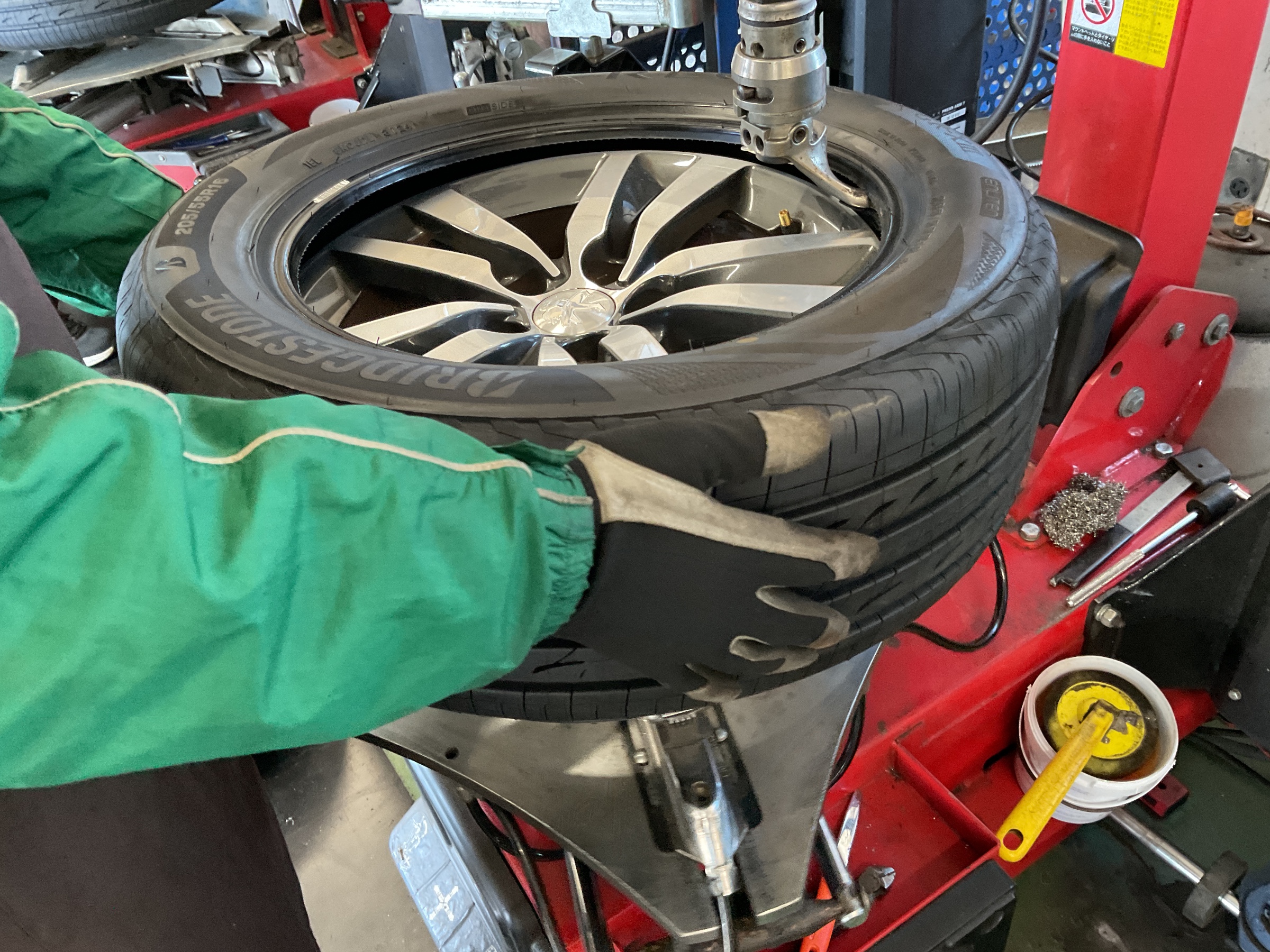 作業はタイヤ交換、窒素ガス充填、ホイールバランス調整の順に行います。
