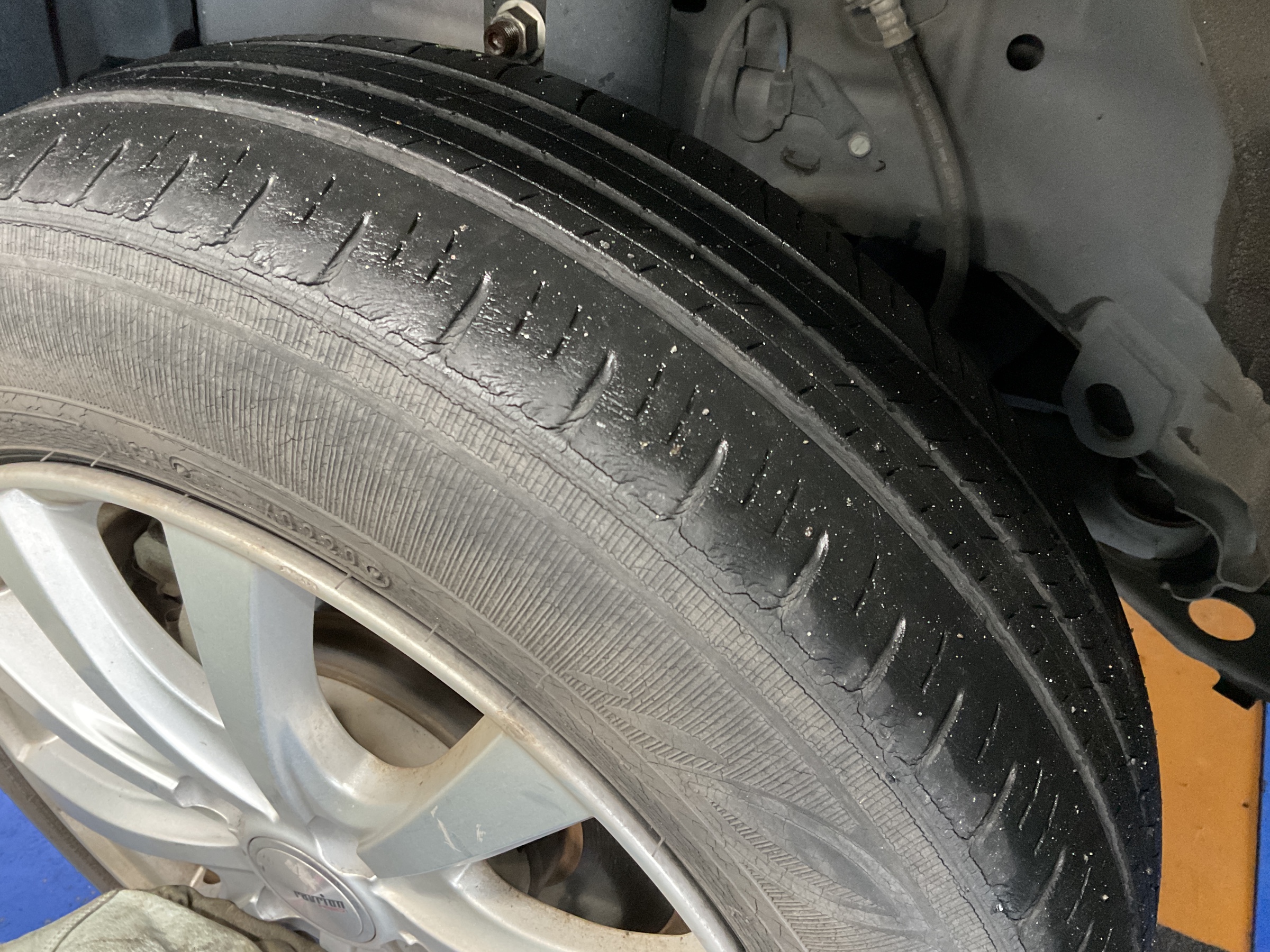 原因は経年劣化と、空気圧の点検不足の可能性あり。