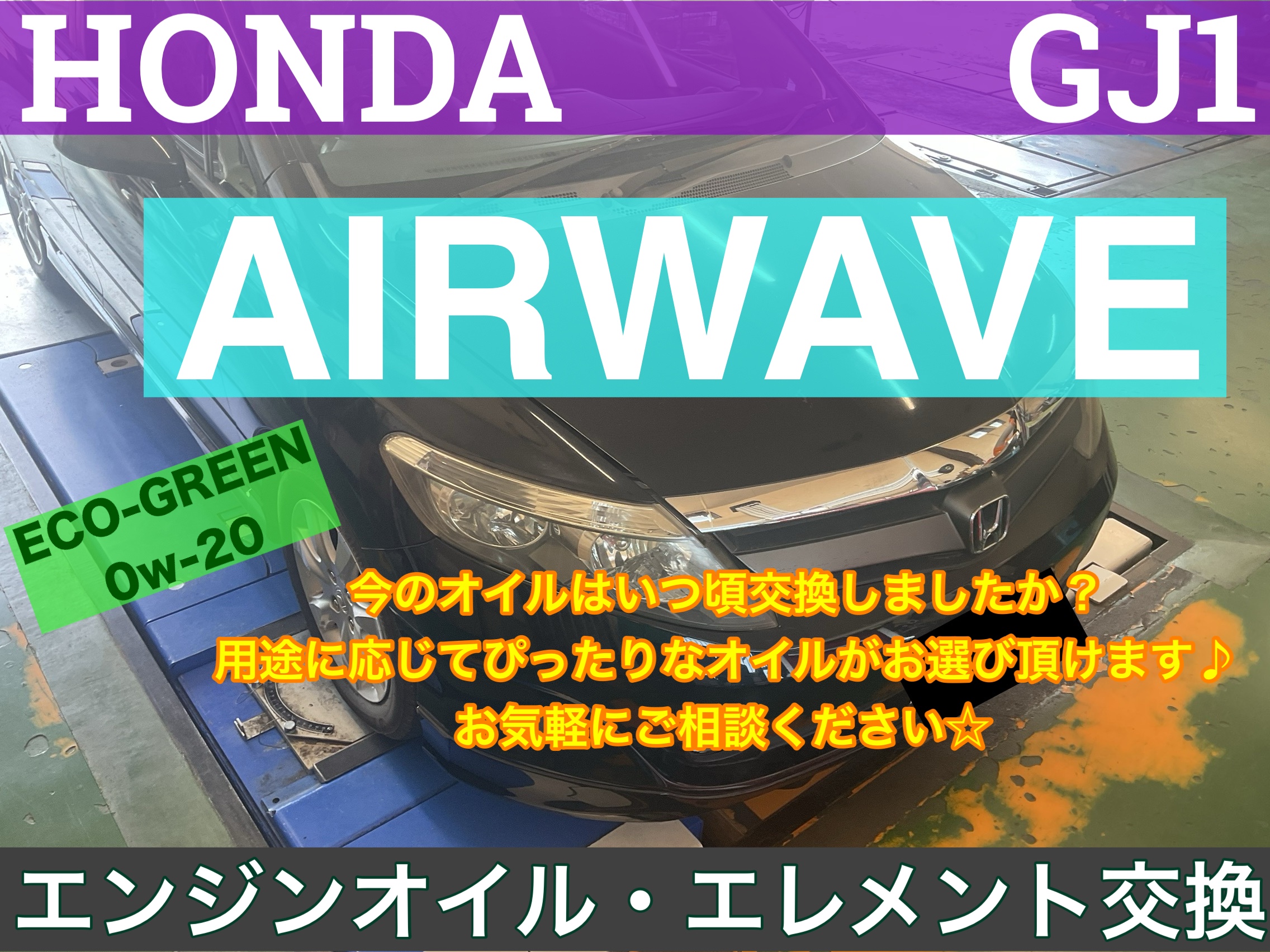 【HONDA エアウェイブ GJ1型】 今のオイルはいつ頃交換しましたか?用途に応じてぴったりなオイルがお選び頂けます♪お気軽にご相談ください【エンジンオイル・エレメント交換】★久喜市・白岡市・菖蒲・加須市・鷲宮・幸手・蓮田・予約★